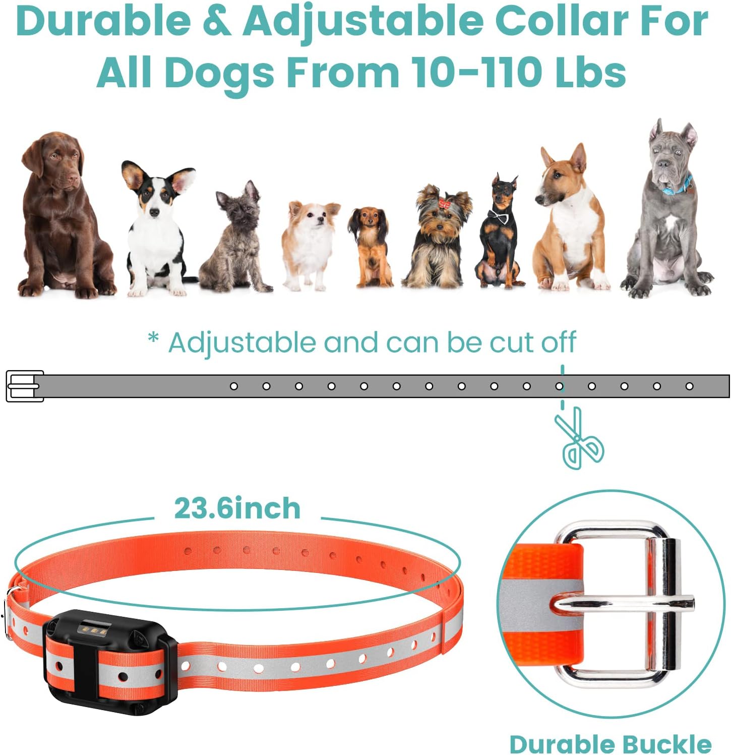 Size Adjustable Collar Fits All Sizes Dogs: The Pet Training Collar Strap Fits Neck Size from 7.1 to 25.6 inch, Perfect for Medium and Large Dogs above 20Lbs. Soft Silicone Contact Points are Safer and More Comfortable than those with Metal Points, Avoiding Skin Damage