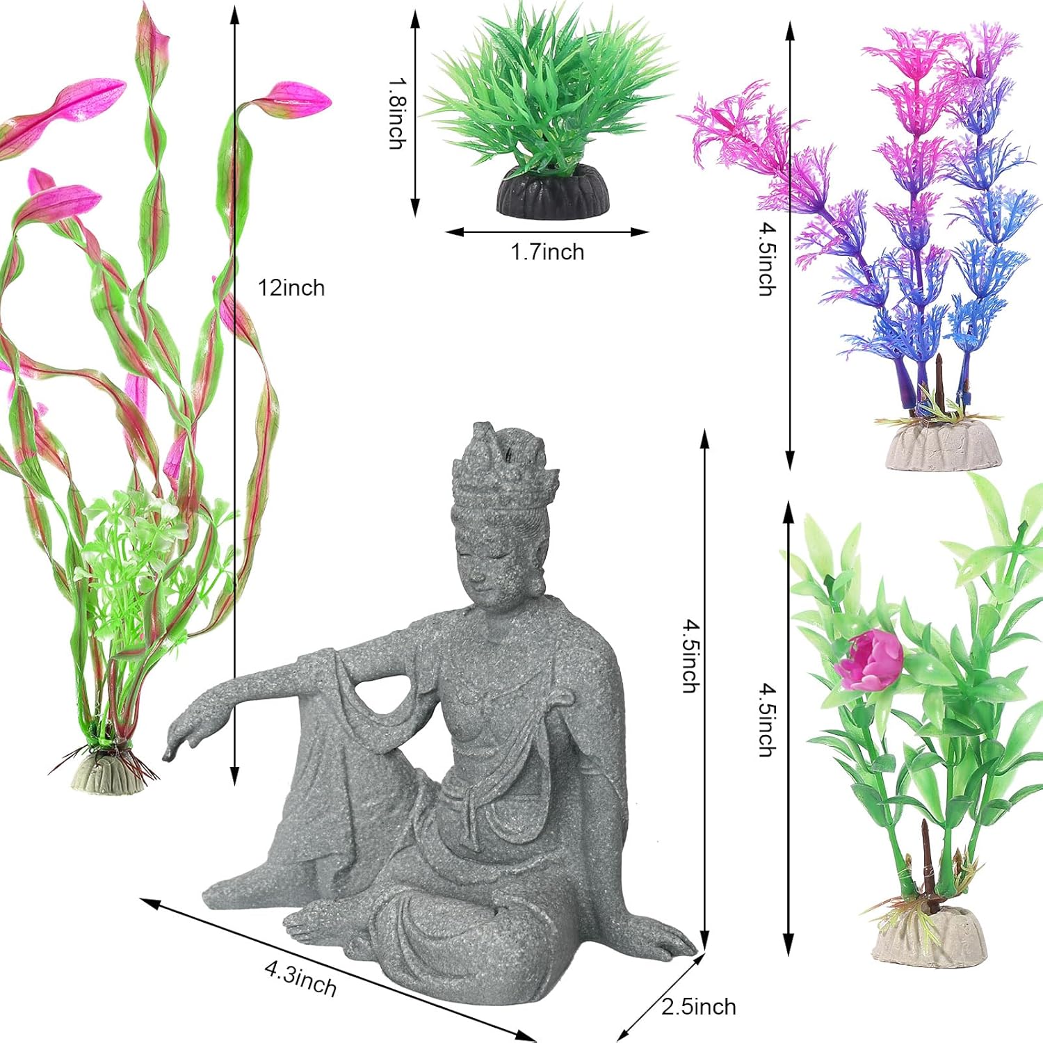 Novel and practical design: This statue depicts a meditating figure, which adds a touch of zen and tranquility to your home. It also comes with 6 plastic water plants, which create a natural and beautiful scenery for your fish tank.