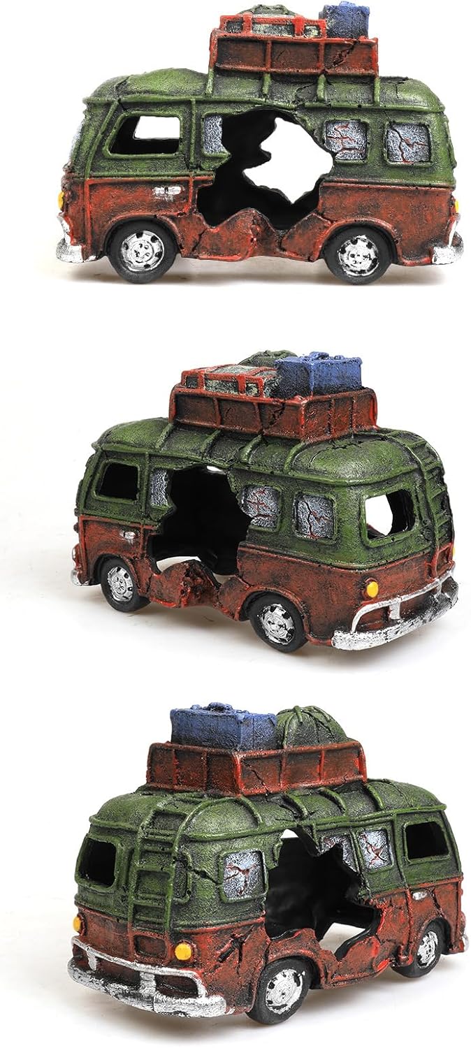 Fish Tank Decorations Bus Car Aquarium Décor Thematic Ornaments – Resin Material Betta Hideout Caves