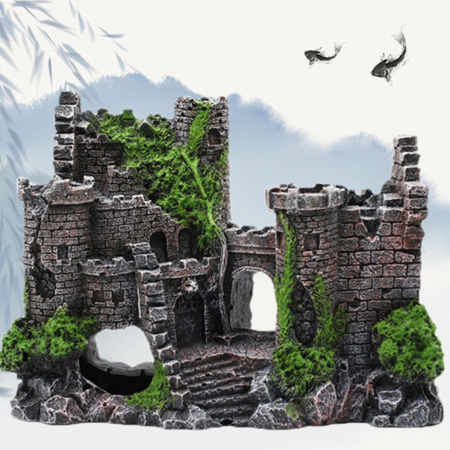 Eco-fridenly: Resin Castle Large Aquarium Decor are made of high-quality resin,which is non-toxic and non-polluting.Good for your fish:and It is a great addition to any fish tank, and can help to create a beautiful and natural environment for your fish to live in.Easy to use: Our fish tank castle decorationsis suitable for both freshwater and saltwater fish tanks. The castle is easy to install and does not require any tools or glue, and can be placed in any position in the fish tank.Vivid vibrant underwater world: The castle is designed to provide a safe hiding place for your fish, creating a life-like environment that mimics nature and provides a comfortable and relaxing atmosphere.