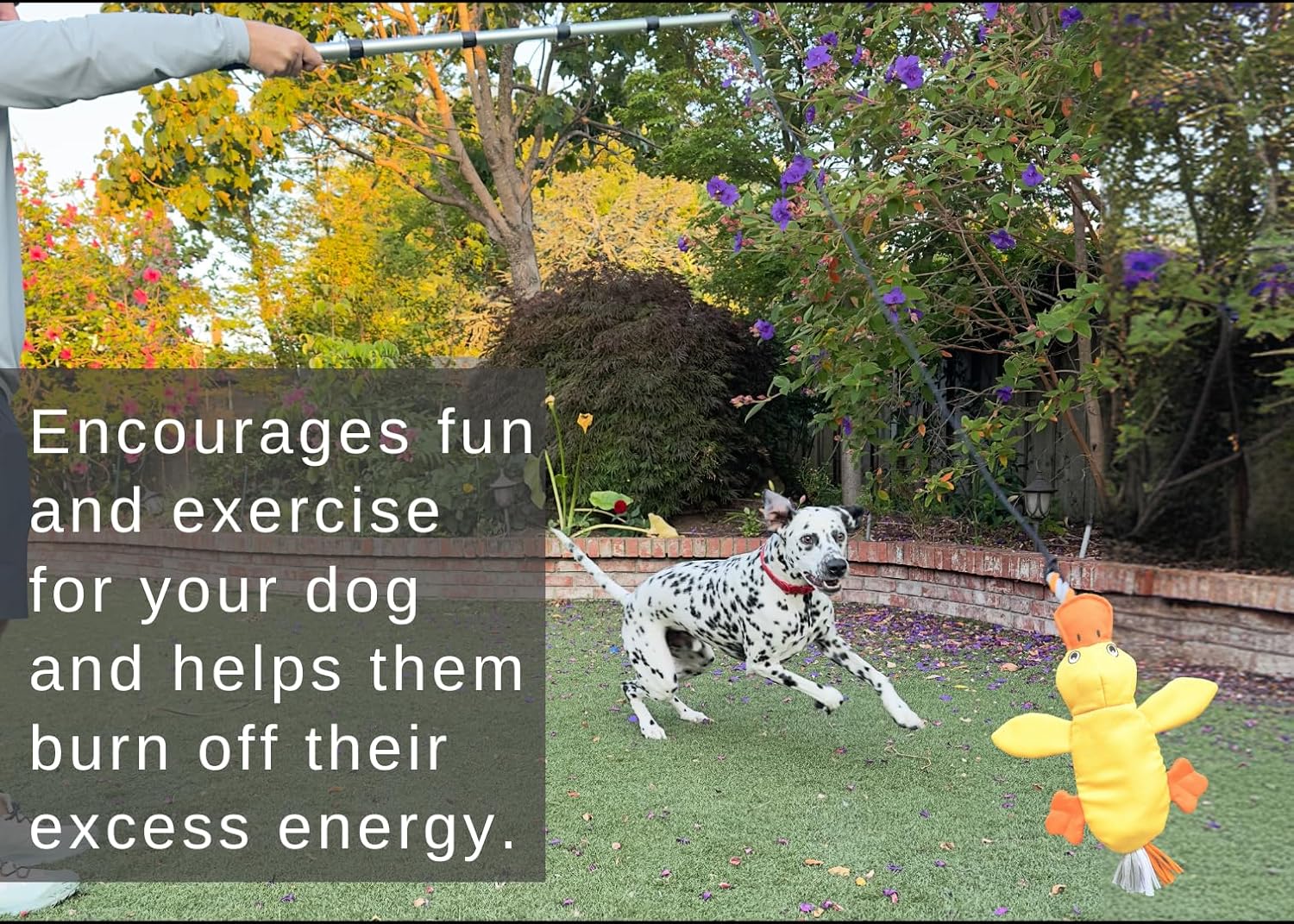 VERSATILE PLAY: Experience endless fun with our flirt pole and duck toy. Perfect for backyard play, it transforms your outdoor space into a playground. From chase and retrieval to interactive play, this teaser wand offers varied sensory stimulation, keeping your dog entertained and engaged for extended periods. Unleash the potential with our handy user guide, packed with training and play ideas for this exciting dog stick toy.