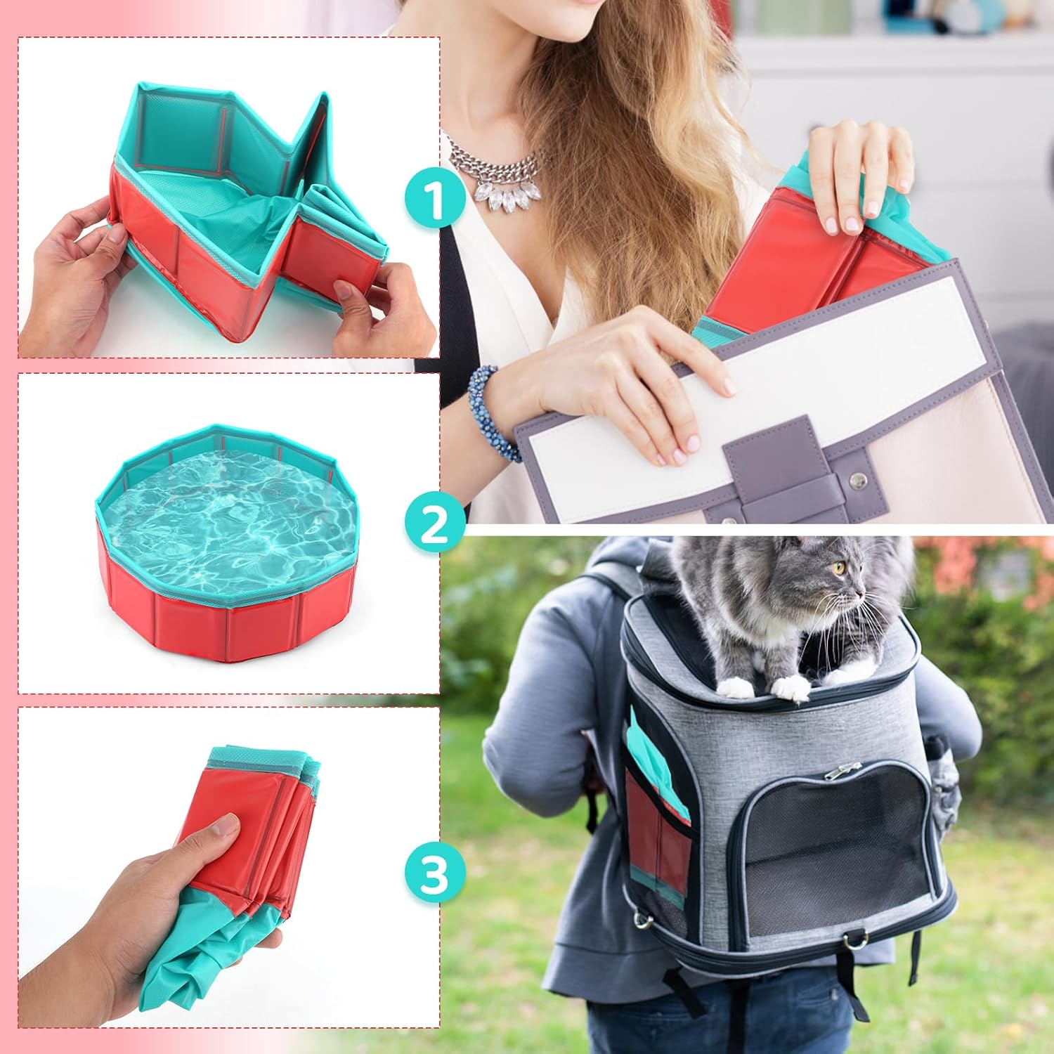 Product Materials: The interactive cat toy pool is made of PVC and polyester tarpaulin, with composite pool bottom anti-slip, foldable, does not take up space, portable and easy to take outdoors.