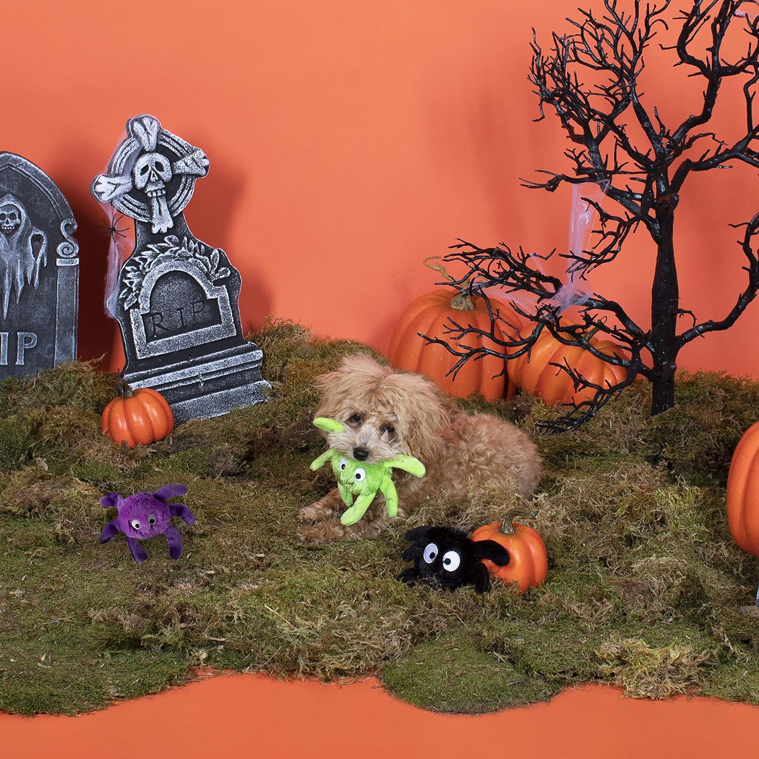 Fringe Studio Mini Dog Toy Set, Creepy Crawly Spiders, Set of 3 (289479), Multi-Colored, PetShop Collection