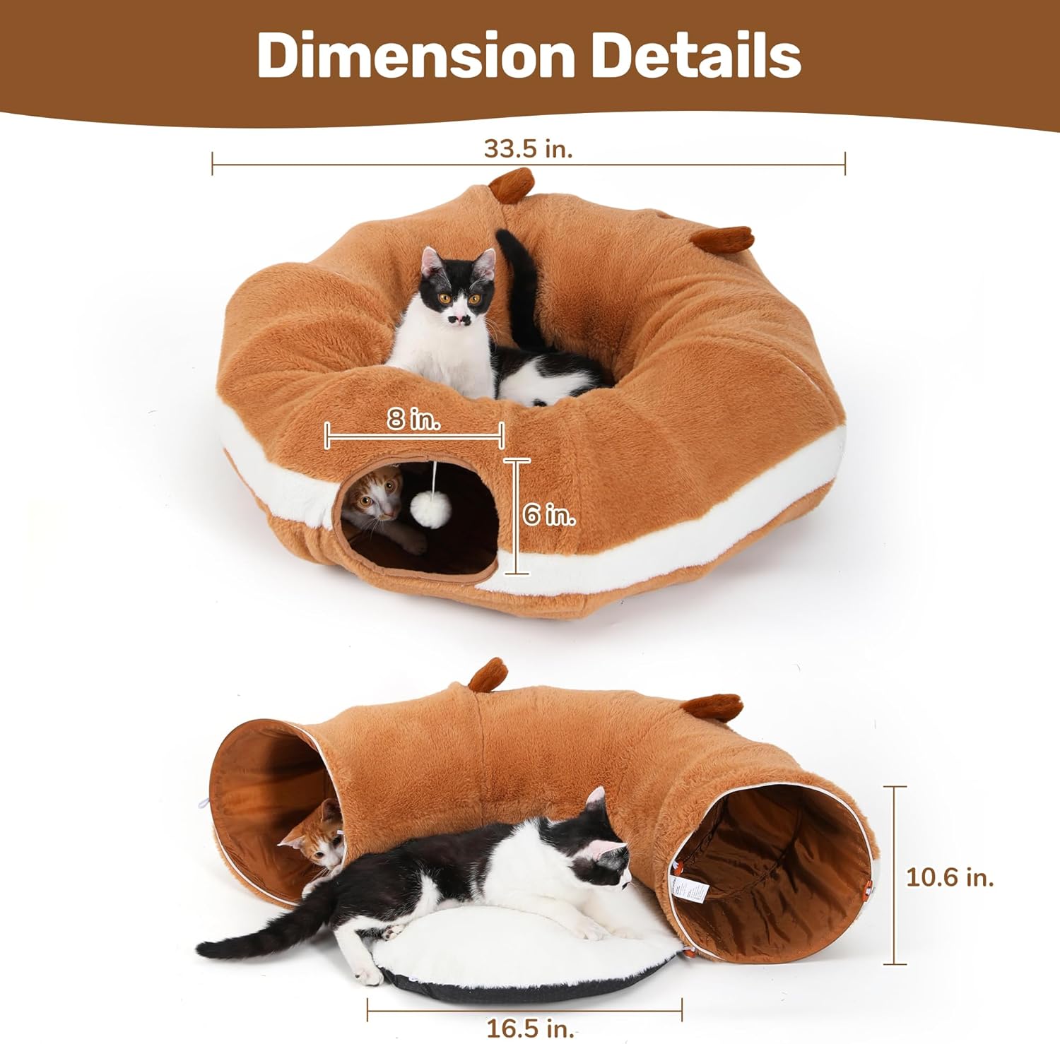 Inspired by Donuts and Puppies – Treat your feline friend to a delightful play space with our cat tunnel bed, inspired by the sweetness of donuts and the charm of playful puppies. The whimsical shape is not only visually appealing but also entices your cat to explore and have fun, making every moment a joy!