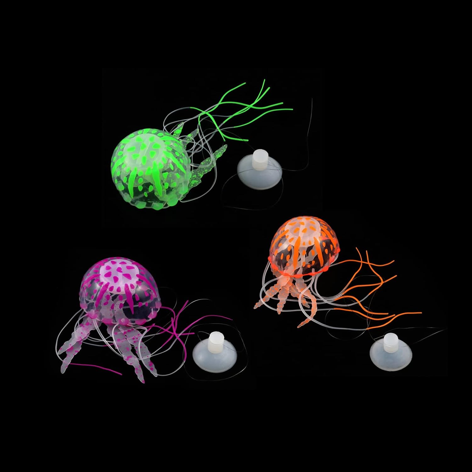 Geesatis Jellyfish Aquarium Fish 3 Pcs Fish Tank Decorations Ornament Tank Fake Fish Plants Silicone Ornament, (Green, Orange, Purple)