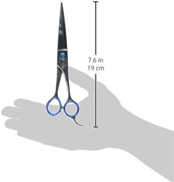 The teardrop-shaped thumbhole and angled thumb ring on this super gator shear set your hand in a natural position. Because the thumb is not overextended during scissoring, tension on the hand and wrist is greatly reduced and scissoring is accomplished with less effort. Calibrated “click-plate” tension dial allows you to customize the tension of the shear. The tension dial “clicks” your settings into place with each turn so tension will not loosen during scissoring. The stainless steel sponge-iron used in super gator shears, the same metal used to make katana samurai swords, is triple-tempered for ultra pureness, creating a metal density that provides supreme balance with a rockwell hardness rating of 59 for an amazingly durable blade edge. Optional ring inserts, included with each shear, create a better fit and reduce rubbing and blistering. The ultra-smooth scissoring capabilities, balance and comfort of these shears will be immediately apparent the moment you try them. Measures 7-1/2-inch length.