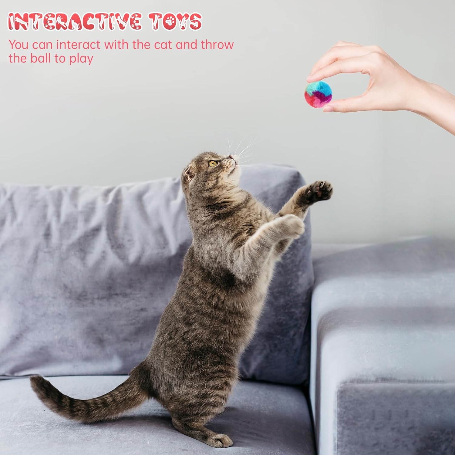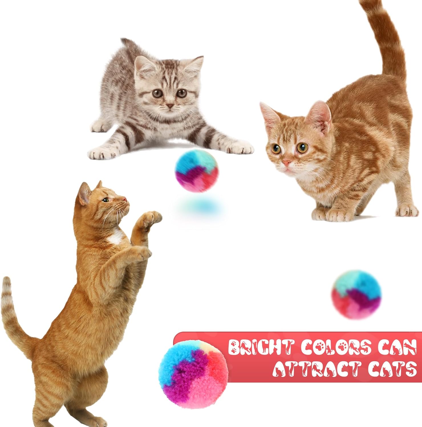 【Colorful Cat Ball Toys】Our cat toy fluffy balls are designed to provide endless entertainment for your furry friends. The lightweight pom pom balls are perfect for cats to chase, bat, roll, and fetch. With their assorted bright colors, these cat toy balls easily grab your cat’s attention, keeping them engaged and entertained for hours. You do not have to worry about your cat chewing on your furniture, or shoes when it’s boring.