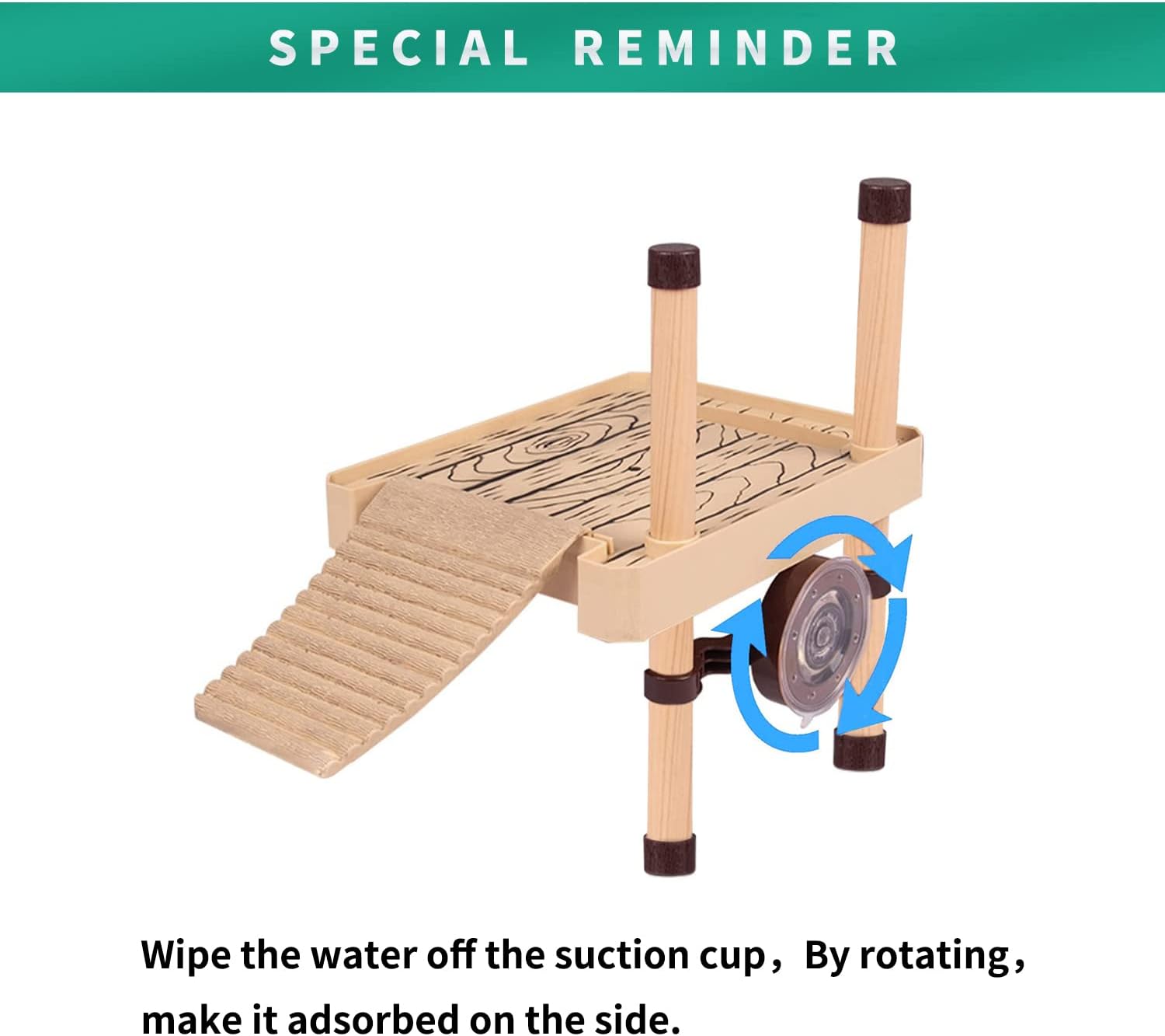It rises with the water level. Submerged ramp with uneven surface for easy access. pets can hide underneath, climb up and hang out, creating an amusement park to your small pets.