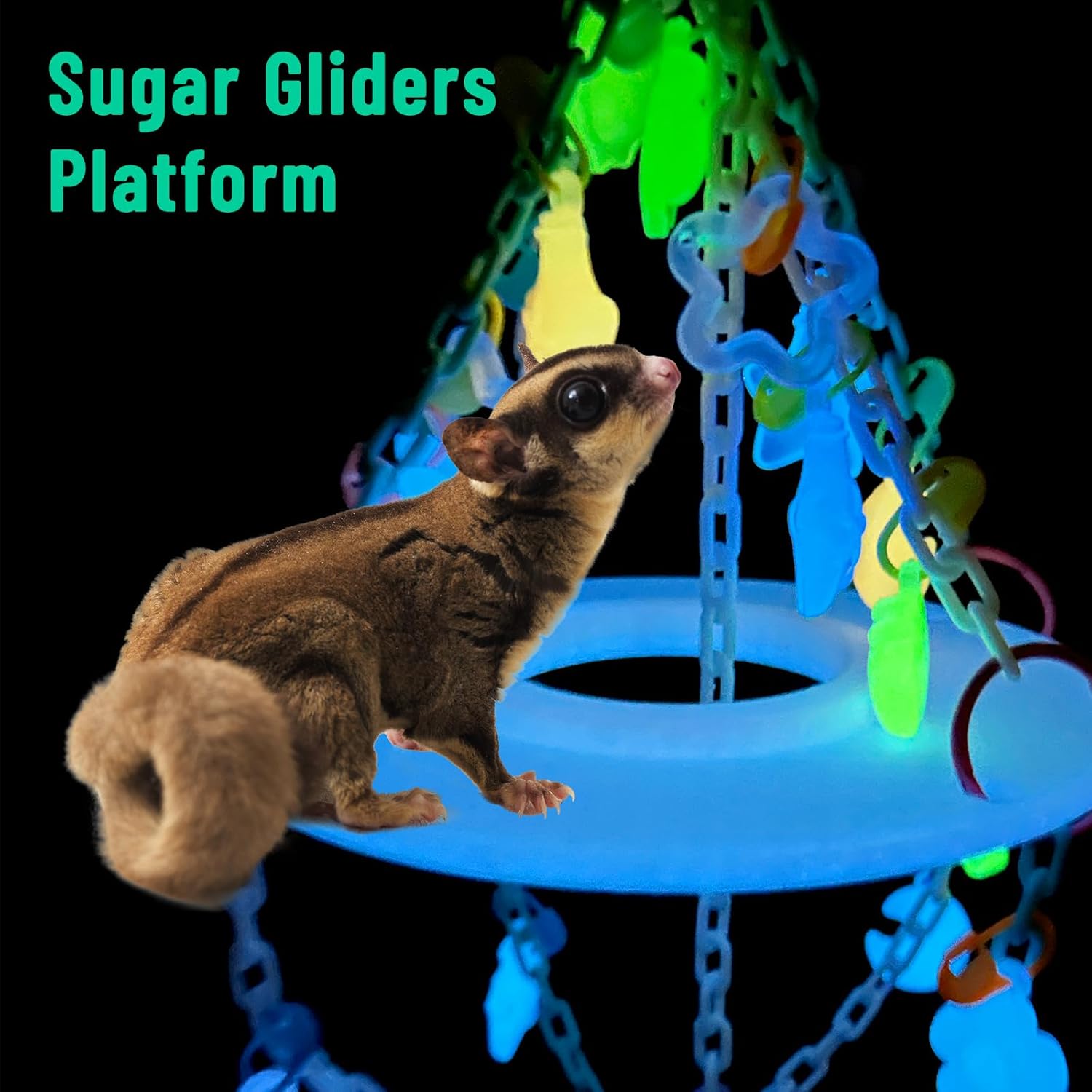 Glow in the Dark Sugar Glider Planet Moon Space Platform Toy – Hanging Climbing Toy for Sugar Glider Cage Accessories
