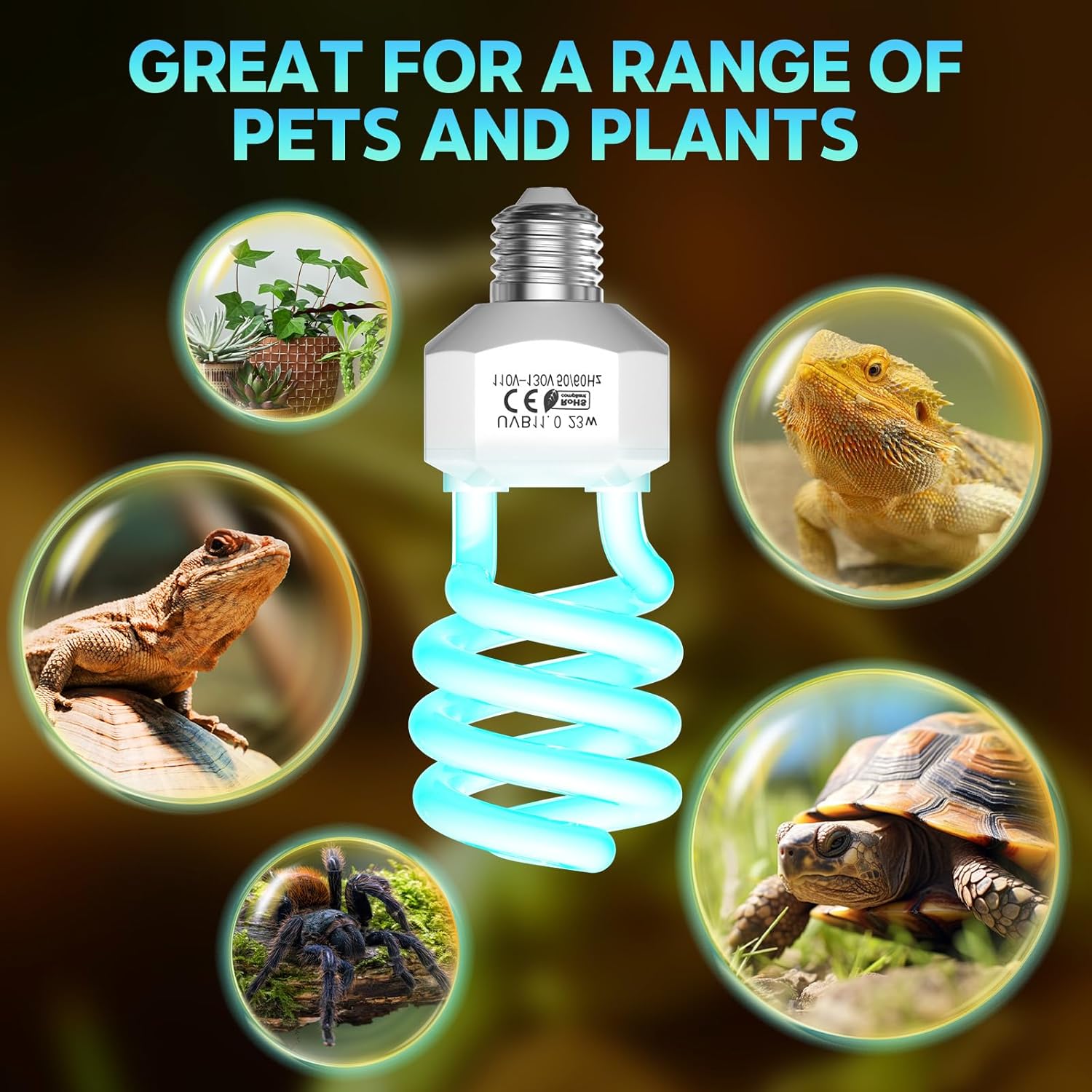 【Safe and high-quality choices】Let her enjoy worry-free playtime with the 23 Watt Desert UVB 10.0 CFL Reptile Bulb. This 10.0 reptile light bulb is UVB stable, maintaining 120V voltage, with a low UVB fade rate and is safe and reliable to use. It’s easy to install with its E26 base and compatible with most fixtures. Trust this reliable and safe option for your beloved family.