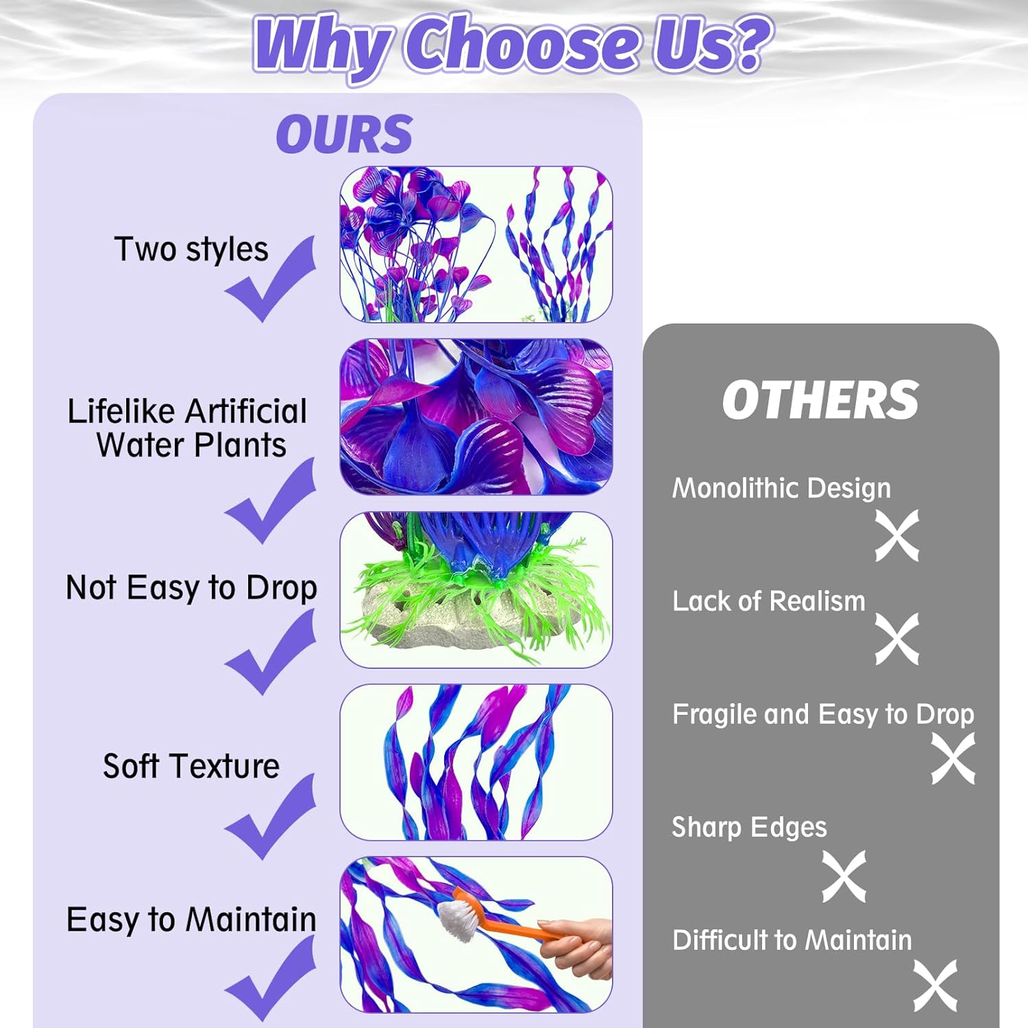 RELIABLE MATERIAL : Our fake water plant leaves and roots are made of soft plastic material that won’t affect the water quality. The leaves do not have sharp edges and have a soft texture, which can effectively avoid any physical damage to the fish while swimming or playing, and can better beautify the e-nvironment, maintain stability and not fade. Provide a comfortable and clean living e-nvironment for fish. Whether placed in a saltwater e-nvironment or freshwater e-nvironment, it can be perfectly adapted