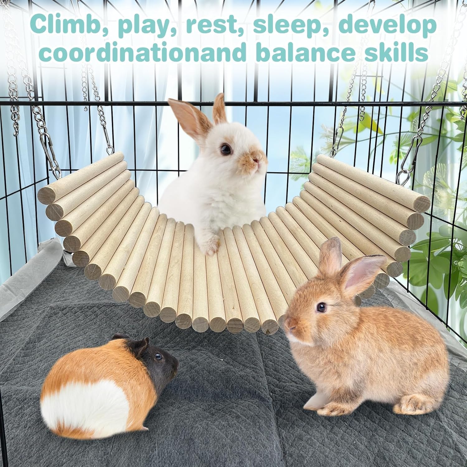 Applicable Objects :Wooden bridge is close to nature,high-quality molar toys,and pets are more assured! Small animal hammock is suitable for dwarf rabbits, Dutch pigs, guinea pigs, chinchillas hamsters rats and other small animals. A good gift choice for your lovely pet to help alleviate the loneliness of anxiety, play with wooden small animal chew toys add fun to the life inside the pet cage