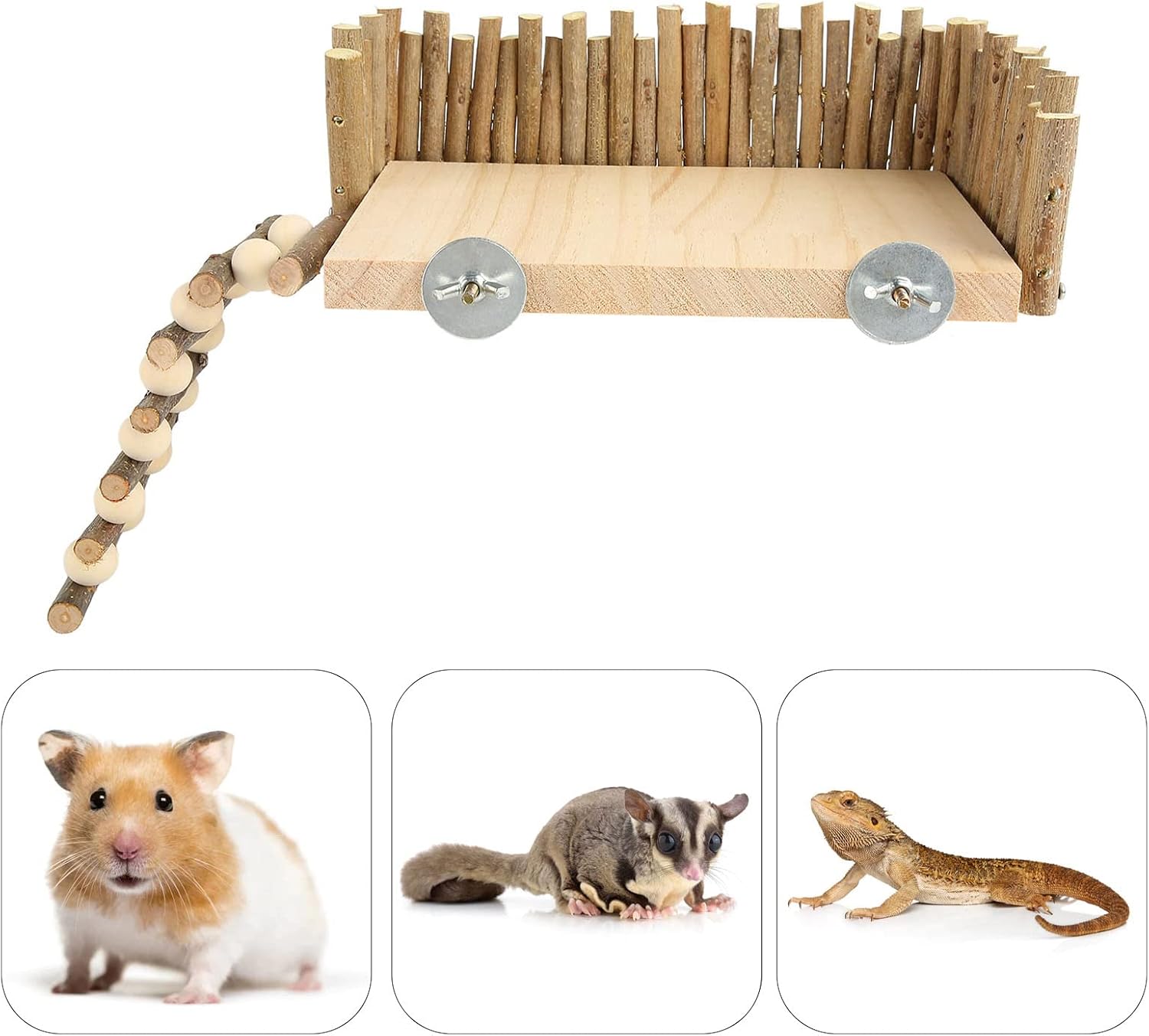 Hamster Climbing Toy Hamster Wooden Climbing, Dwarf Hamster Activity Playground with Fence for Sugar Glider Golden Bear Guinea Pig, Small Pet Climb with Ladder, Screw Type
