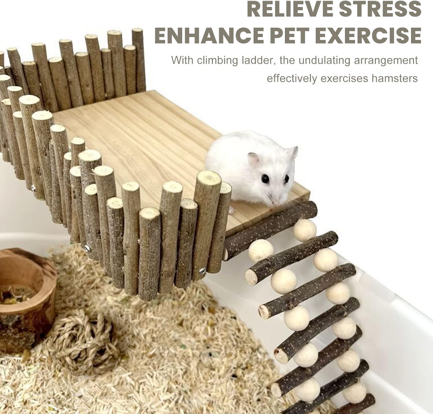Easy Installation and Versatile Use: Enjoy hassle- setup with this Wooden Hamster Climbing that requires no complicated tools or steps. Its versatile design makes it suitable for various of cages, allowing you to easily integrate it into your pets’ living space. Give your furry friends a stimulating climbing area that promotes physical activity and mental engagement.