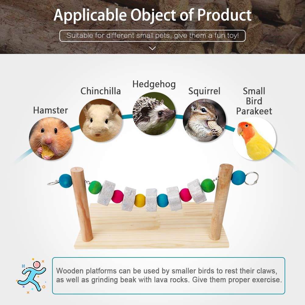 Hamster Wood Ledge Platform with Lava Stone Block Chew Toys,Pet Cage Resting Wooden Shelf for Chinchilla Guinea Pig Gerbil Mouse Rat