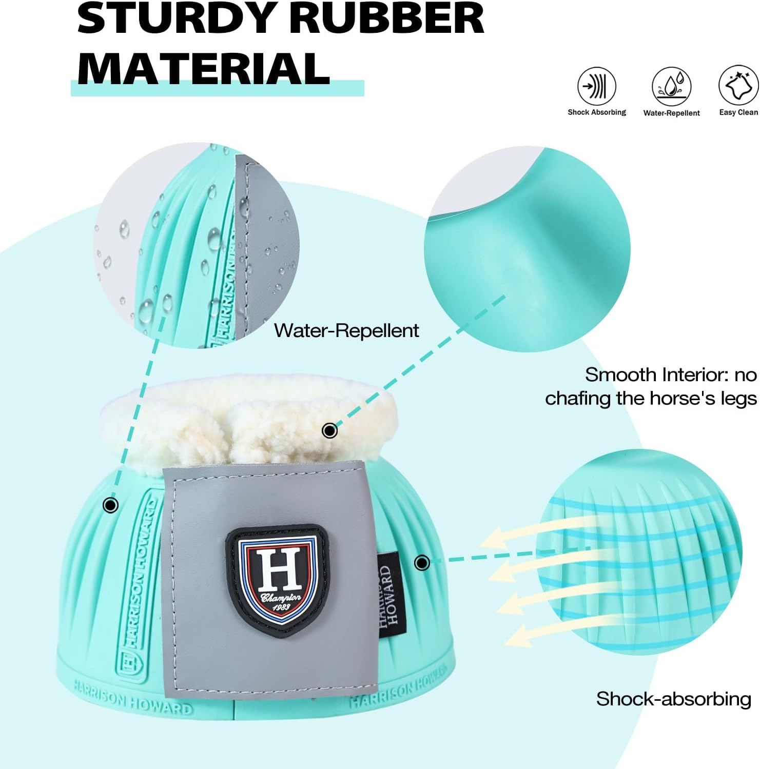 Harrison Howard Rubber Pull-on Bell Boots with Fleece Lining and Extra-Large Leather Touch-Close Tape Hoof Overreach Protection for Horses Sold in Pairs Turquoise L