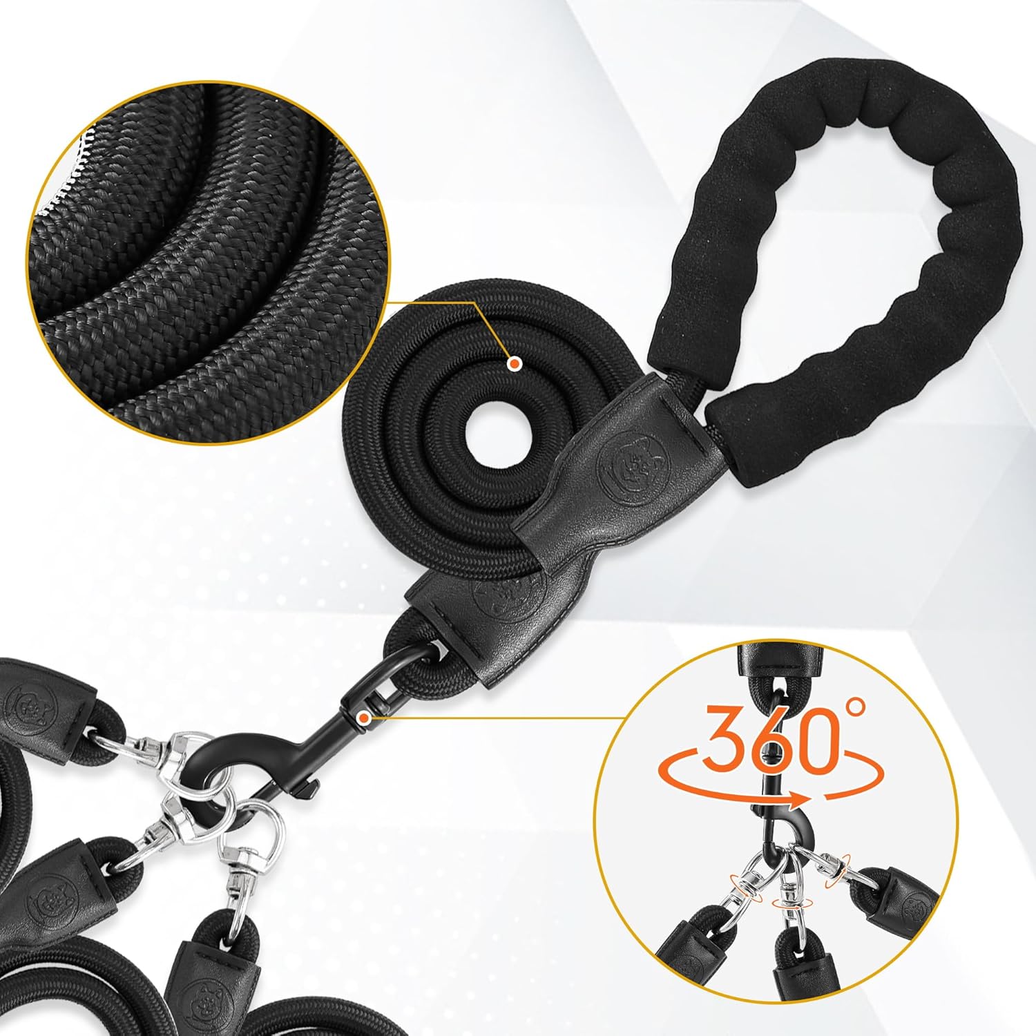 【No Tangle Design】: 360° swivel clasp design allows for auto adjusting when dogs criss cross, no limtation for your dogs while moving from side to side without messing the leash.allowing your dogs to move freely around you