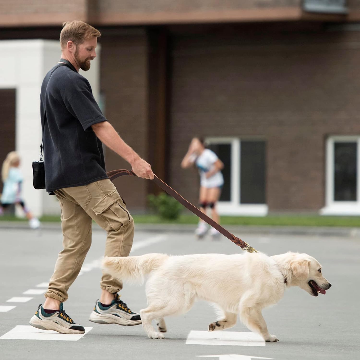1 inch width is wider than other leather leash,no harm to your hand while dog pulling