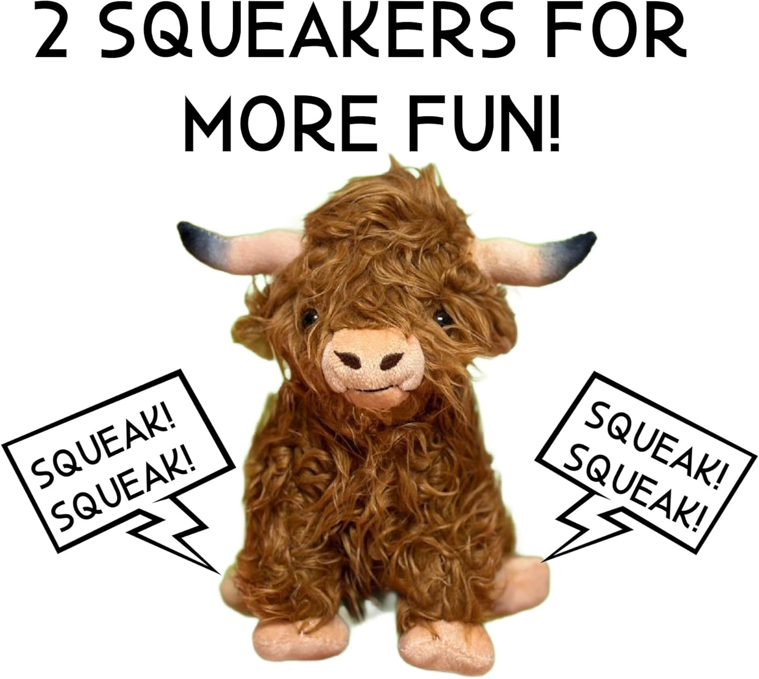 Say hello to Haggis the Highlander Cow – your pup’s new favorite barnyard buddy! With its irresistibly shaggy fur, soft plush body, and iconic long horns, this cuddly cow is ready to “moo-ve” into your dog’s heart (and toy bin). Whether your dog is a rough-and-tumble wrestler or a snuggly napper, the Highland Cow is made to match their play style. Big dogs will love tossing it around, while little ones will find the perfect cuddle companion. And yes—it squeaks for added fun! Available in charming pink, classic brown, bold black, or playful blue—there’s a Highland Cow for every pup’s personality.