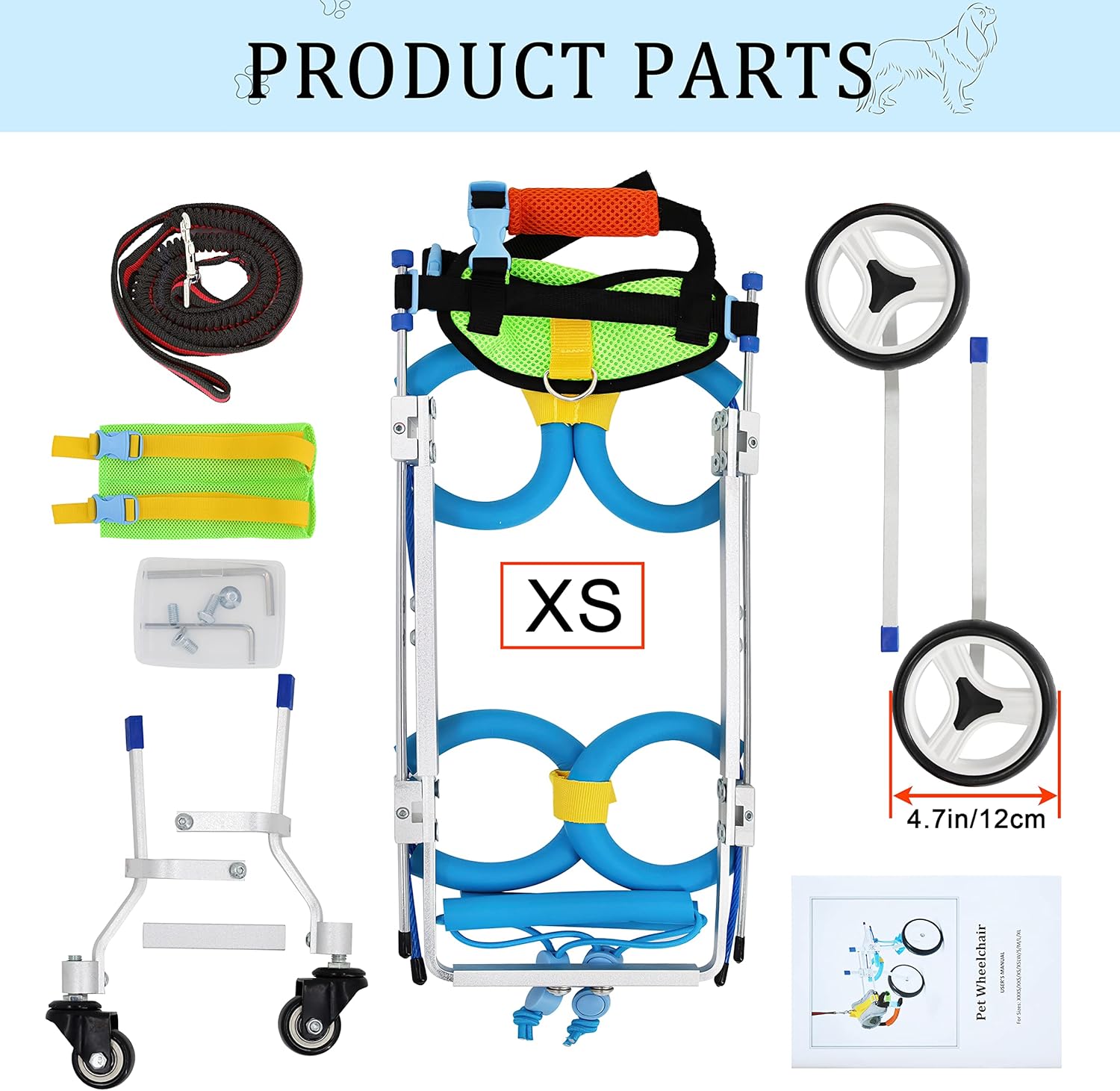 [Note]: THE 4-WHEEL ADJUSTABLE WHEELCHAIR is suitable for pets whose legs are disabled and cannot move normally. If your dog has been seriously injured, we recommend that you go to the veterinary hospital for help as soon as possible. I wish your pet a speedy recovery!