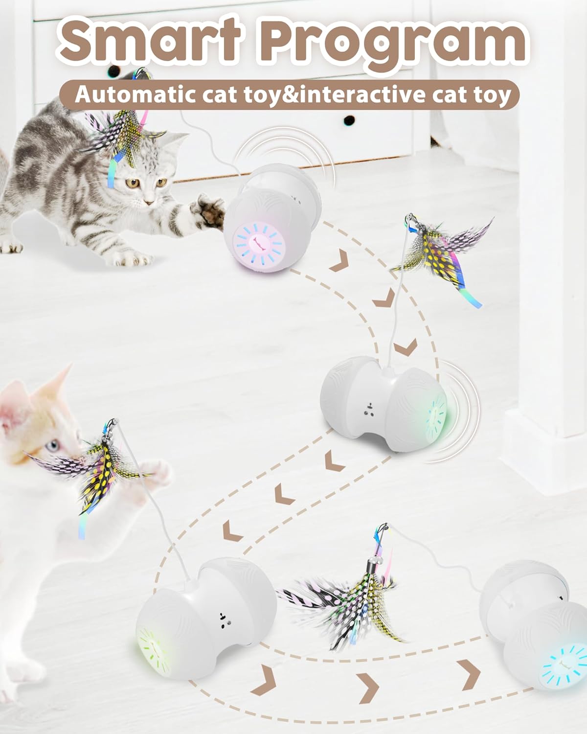 【Two Speeds】This electronic cat toy is suitable for both lazy cats and energetic kittens. Slow speed is suitable for sensitive or quiet cats. Our robotic cat toys have powerful motors for all floors, and indoor and outdoor activities.