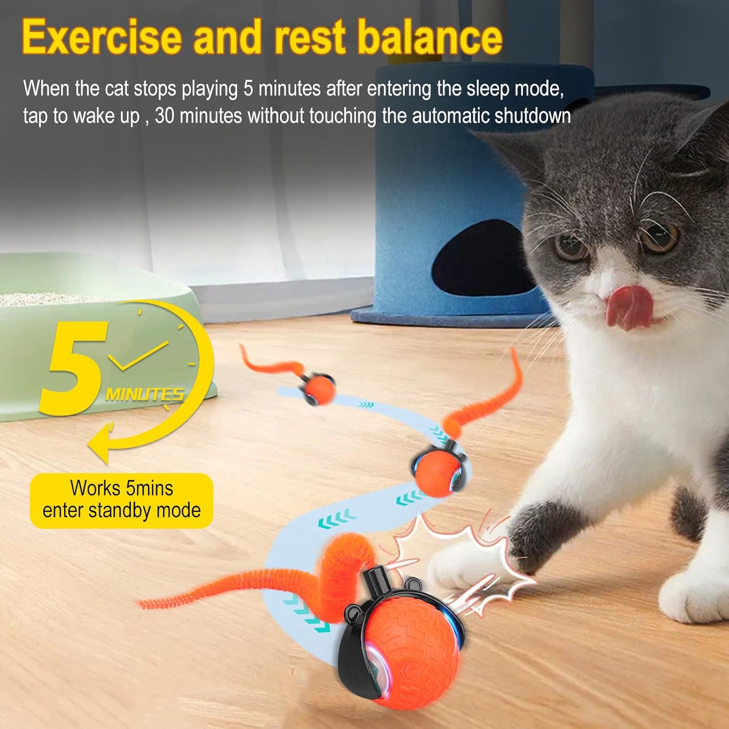【Quick Charging & Long Battery Life】The cat toy built-in high-capacity battery, superior to older models on the market, it charges in just 30 minutes and provides over 1.5 hours of continuous play. Keep your pet entertained anywhere, freeing up your hands for the day.