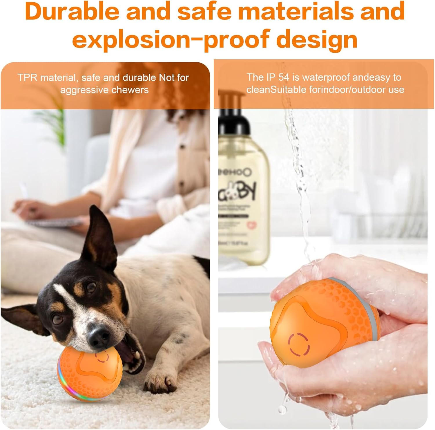 THICK WASHABLE CASE: This pet toy ball is made of safe, bite-resistant material that stands up to your dog’s enthusiastic play. The sturdy upgraded shell ensures durability and you can use it with confidence.IP54 waterproof rating, easy to clean, can be washed directly with water (insert must be removed). [The ball is not suitable for heavy chewers].