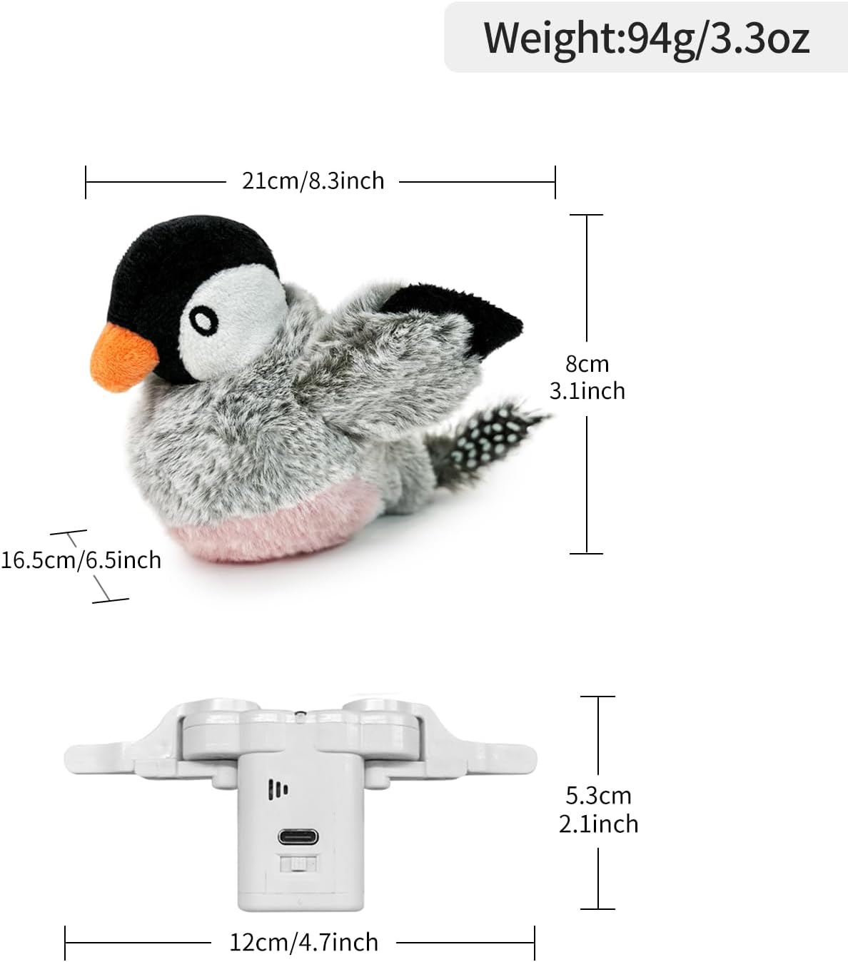 Keep your feline friend entertained for hours with this interactive flapping bird toy! This charming plush toy combines the thrill of movement with engaging sounds to create an irresistible playtime experience. When activated, the toy flaps and chirps, triggering your cat’s natural hunting instincts. Each toy comes with a bonus tube of premium catnip and a catnip pouch to enhance the play experience. The USB-rechargeable design eliminates the need for batteries, making it a convenient choice for pet owners. Perfect for indoor cats of all ages, this toy helps promote exercise and mental stimulation while preventing boredom. The durable construction stands up to repeated play sessions, while the size is ideal for batting, pouncing, and carrying. Give your cat the gift of interactive play with this delightful flapping bird toy.