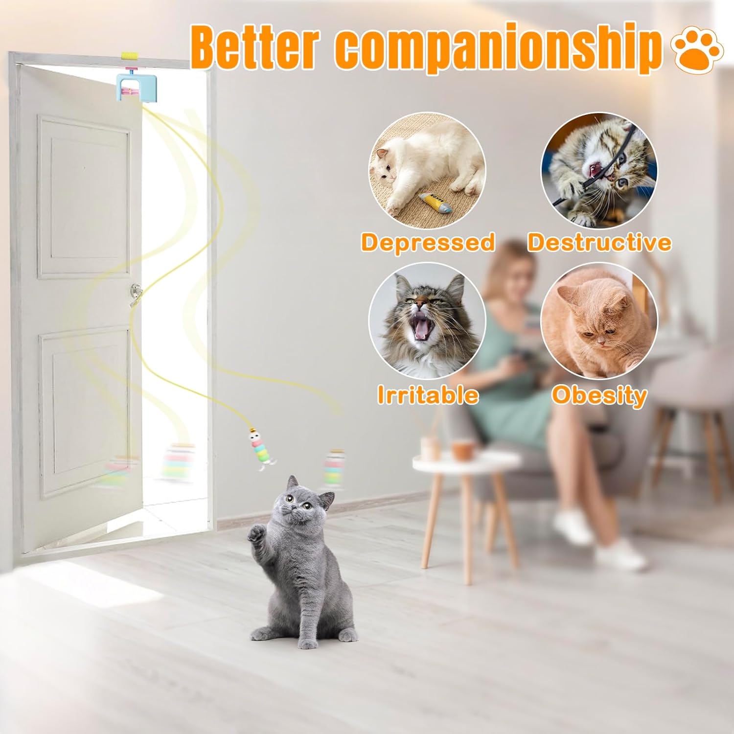Interactive Door Hanging Cat Toy: Cat toy for indoor cats and outdoor Cats Keep your feline entertained for hours with this automatic flying bird cat toys for indoor cats! The lifelike fluttering motion and feather attachment stimulate your cat’s natural hunting instincts, cat bird toy flying perfect for bored indoor and outdoor adult cats and kittens.