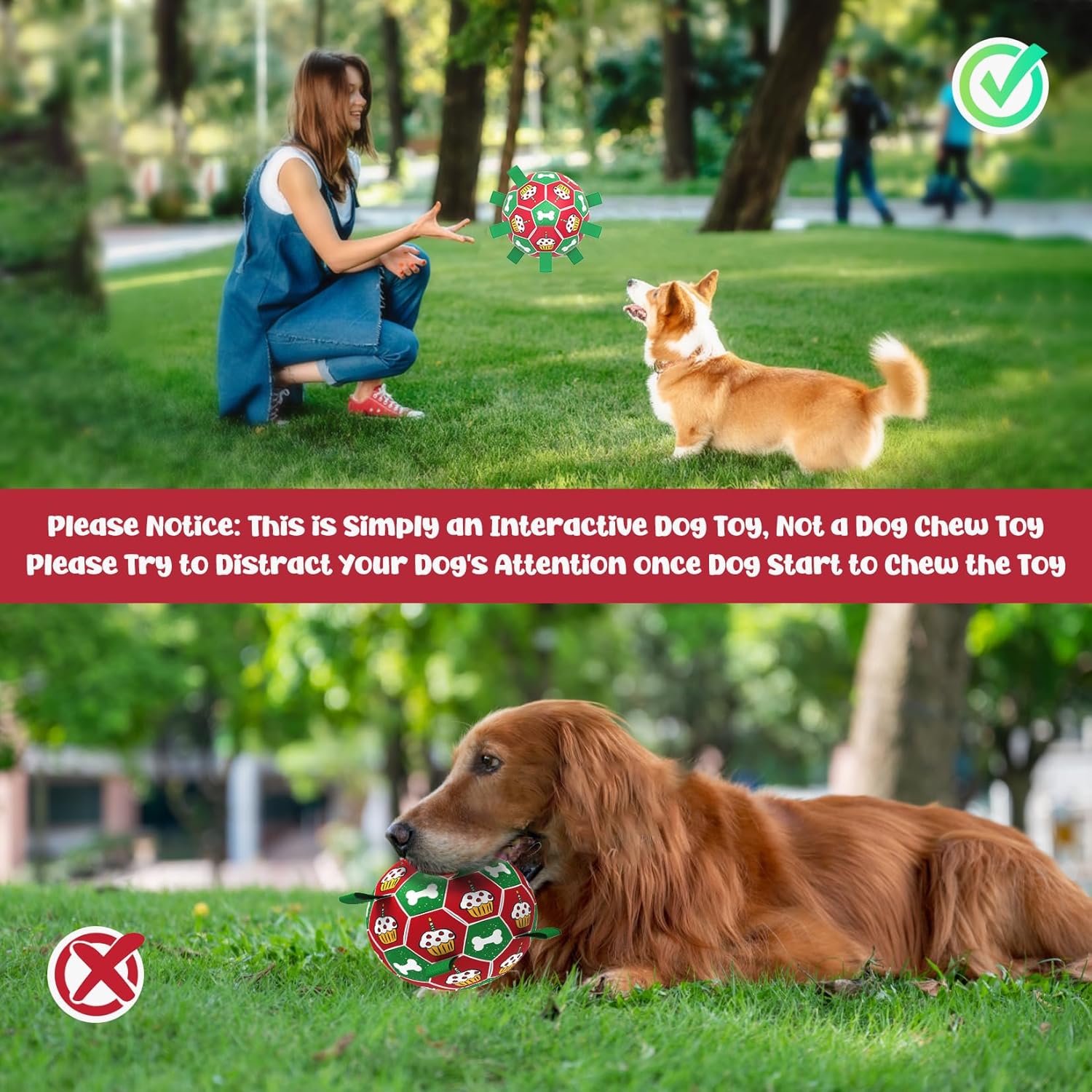 【Made of durable PU material】Made of durable, soft PU material, this dog toy is designed for active games like fetching and tugging, but it is not a chew toy. If your dog starts to chew on the dog soccer ball toy, gently stop them to ensure the ball stays in great shape for longer-lasting playtime.