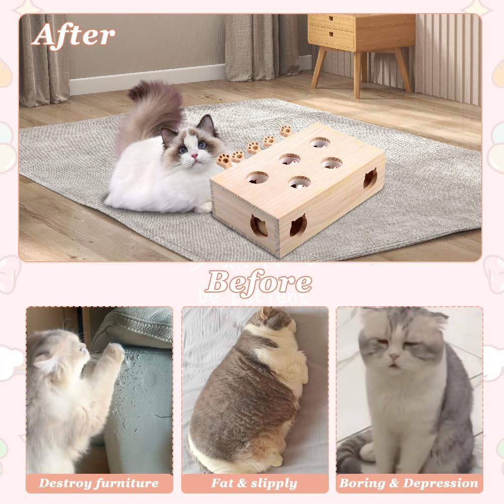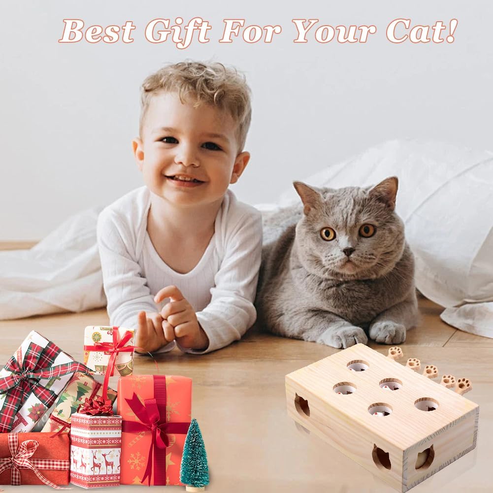 Interactive Wooden Whack-A-Mole Cat Toy with 2PCS Catnip, 3-in-1 Multi Functional Wooden Cat Toy, Engaging and Durable Play for Cats and Kittens, Perfect for Indoor Exercise and Fun