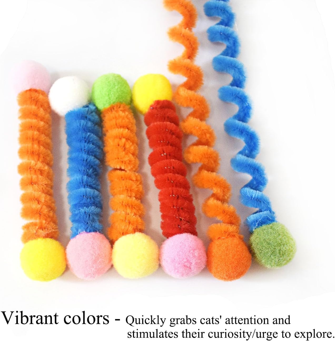 Handmade by virant pipe cleaner and pom pom. These cat spring toy have a velvety soft outside and easy to strech! No hurt to kittens