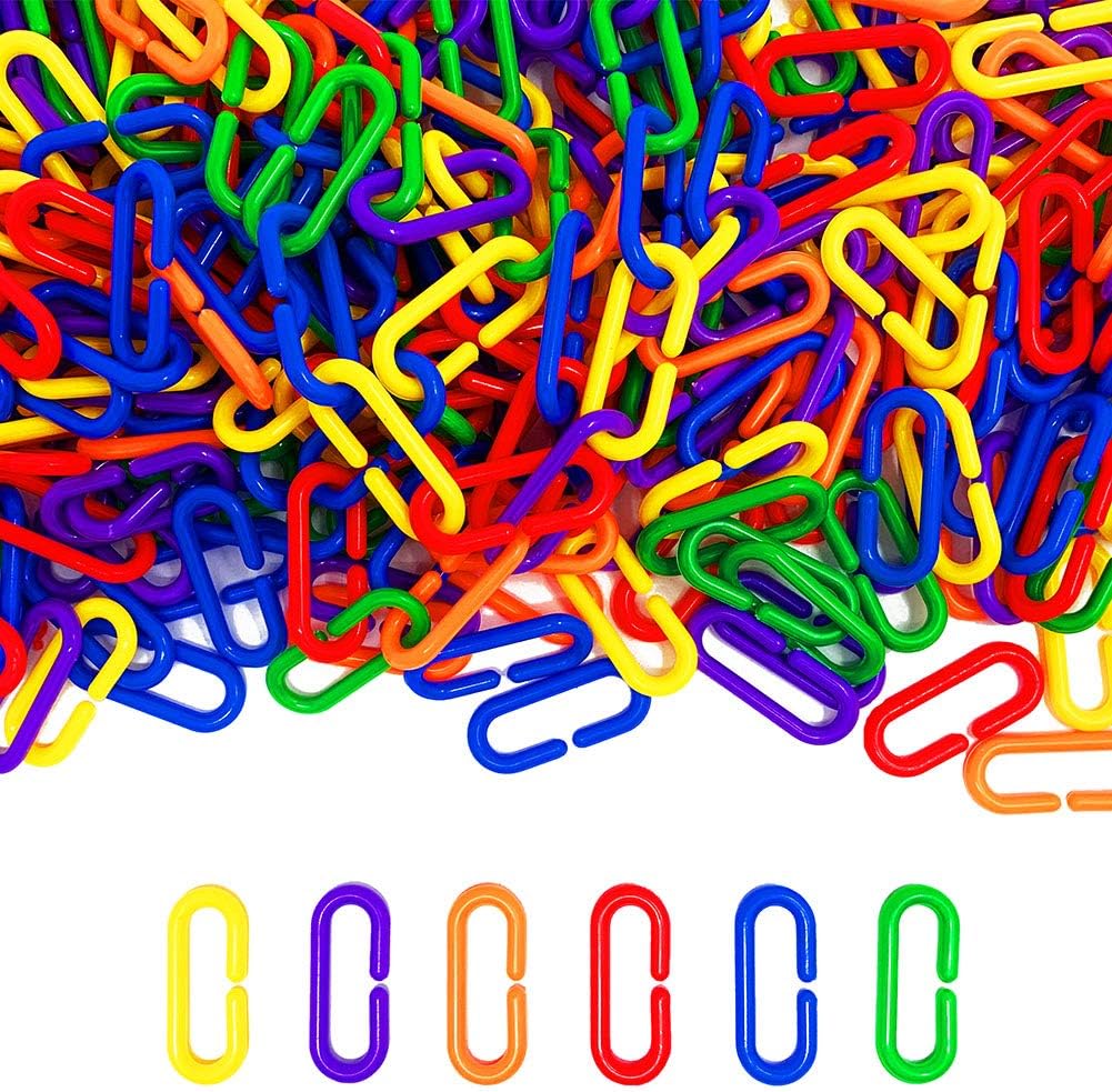JIALEEY 600 Piece Plastic C-Clips Hooks Chain Links Rainbow C-Links Children’s Learning Toys Small Pet Rat Parrot Bird Toy Cage