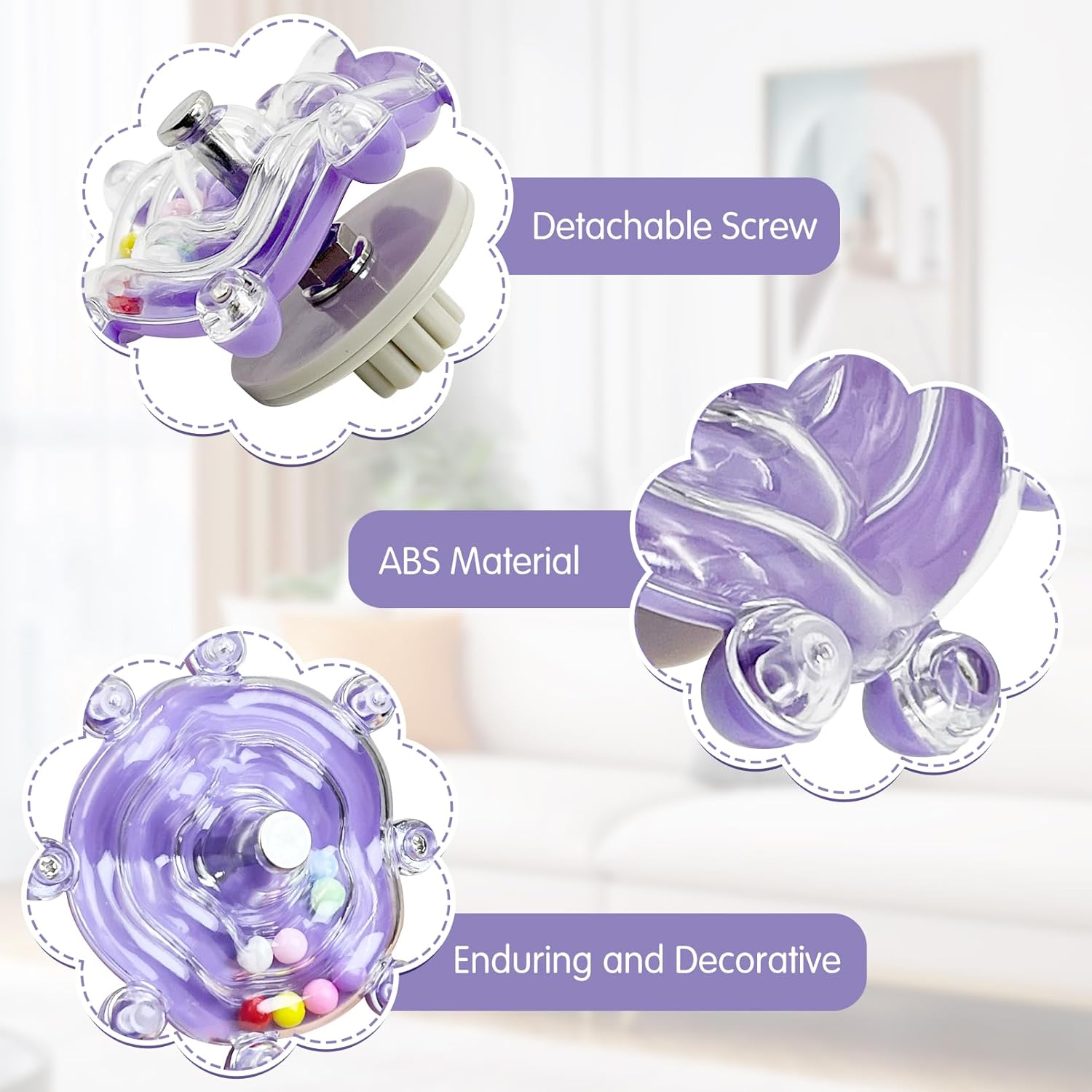 EASY TO USE: The set includes a yellow spinning rattle cockatiel toys; with screw clasp suspension; a purple spinner rattle parrot toy; with screw clasp suspension; a clear color parrot cage toys; with chain suspension; and three white bird chew toys; meets different usage needs and scenarios; easy to hang in birdcage or elsewhere; and can be mounted on birdcage with ease; offers a variety of ways to play with your pet parrot; this bird toy is easy to This budgie toys is easy to maintain and waterproof; you can clean it with running water or a damp cloth