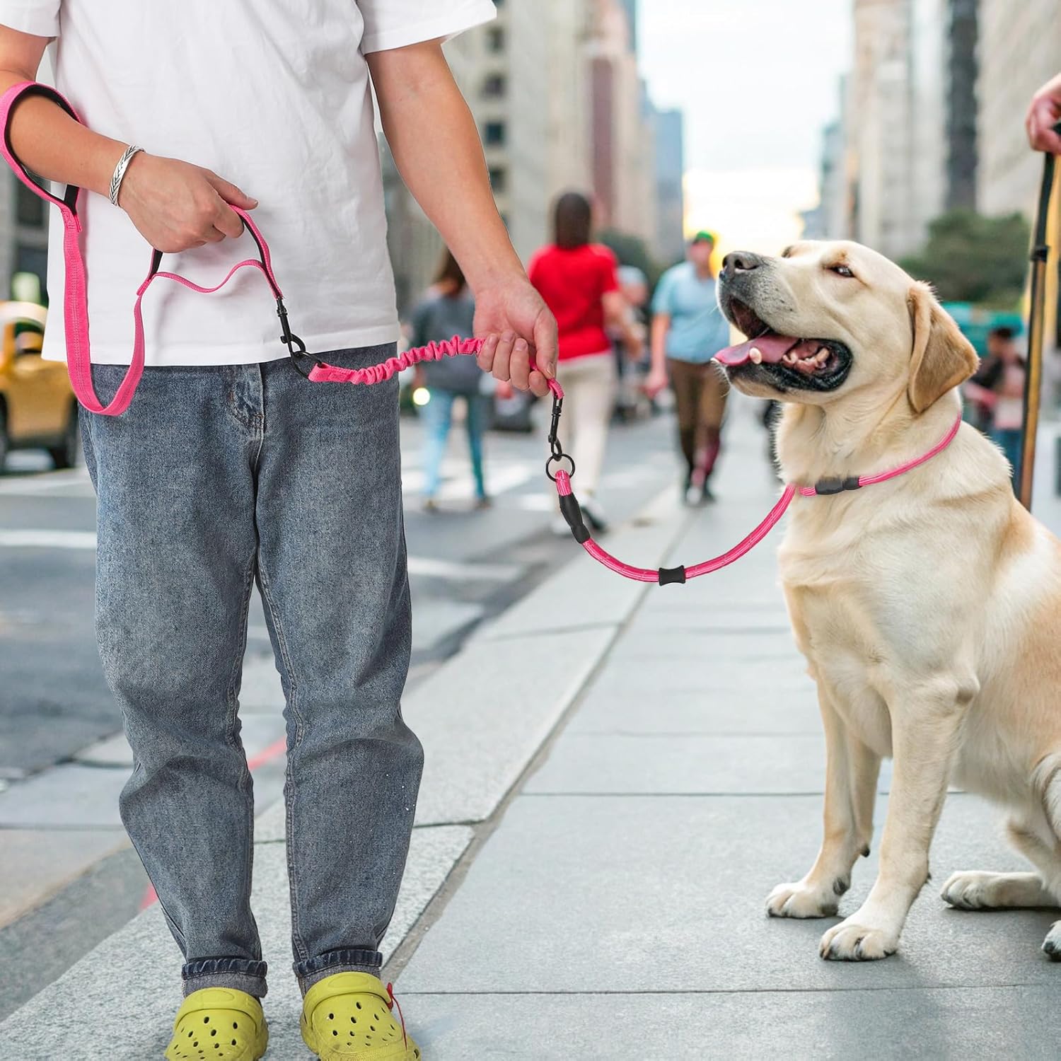 Shock Absorbing Bungee:The shock-absorbing bungee jumping belt has a built-in elastic band. The force will extend, providing sufficient elasticity and control to absorb sudden vibrations during walking, reducing the risk of injury. Improved walking safety