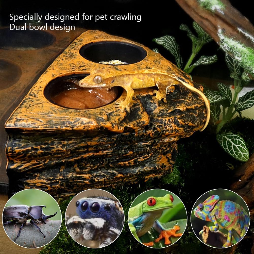 MATERIAL & SIZE: Crafted from high-quality plastic to ensure worry-free feeding environment for your pets. The artificial stone textures seamlessly integrate with reptile tanks to enhance the overall landscaping. With a size of 5.71 x 2.36 x 3.94 inches/14.5 x 6 x 10 cm