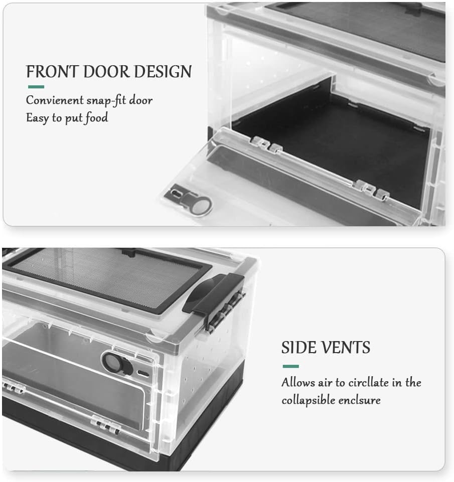 360°View and Mesh Top Foldable Rearing Box Cage Bottom Pulley Design Reptile Mat included Upgrade Large Reptile Tank