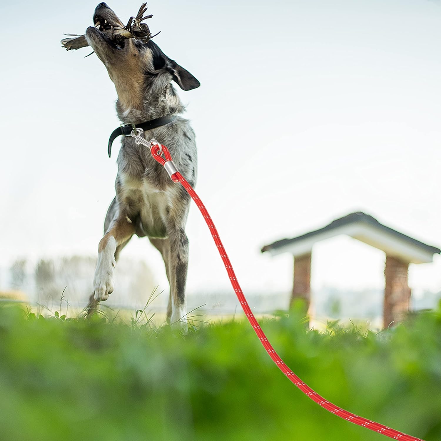Nylon Dog Rope Leash : This dog leash (diameter 2/5″) is woven from soft nylon material, adopts a special process which is tightly woven, not easy to pull off, and has strength, will not be entangled with trees, grass, etc.. In addition, after many tests, this long dog leash is lightweight enough to float on the water without sinking. Pets can swim on a leash without affecting their activities.