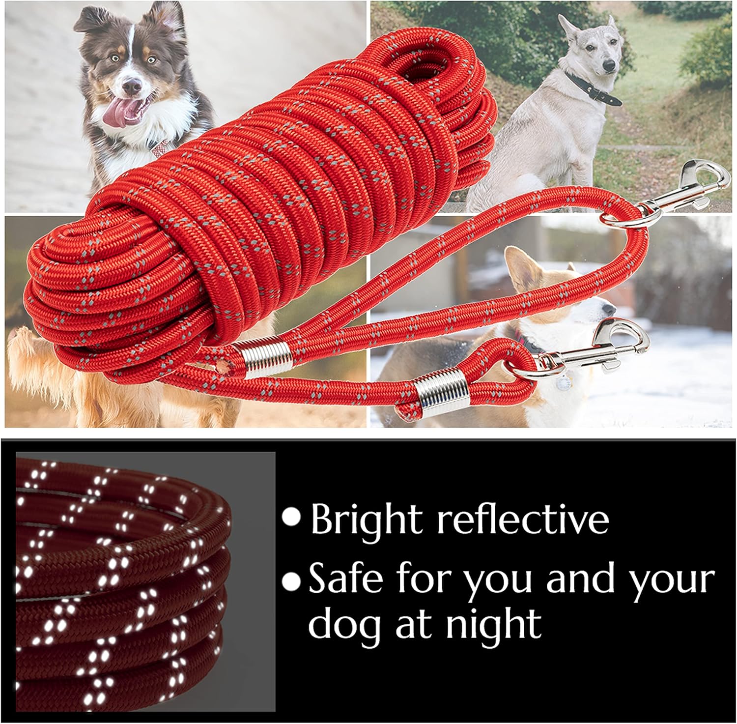 Long Dog Leash – 30ft, 50ft Reflective Training Heavy Duty Rope Pet Leash for Small, Medium, Large Dogs – Nylon Dog Lead Check Cord for Walking, Hunting, Camping, Running Outdoor