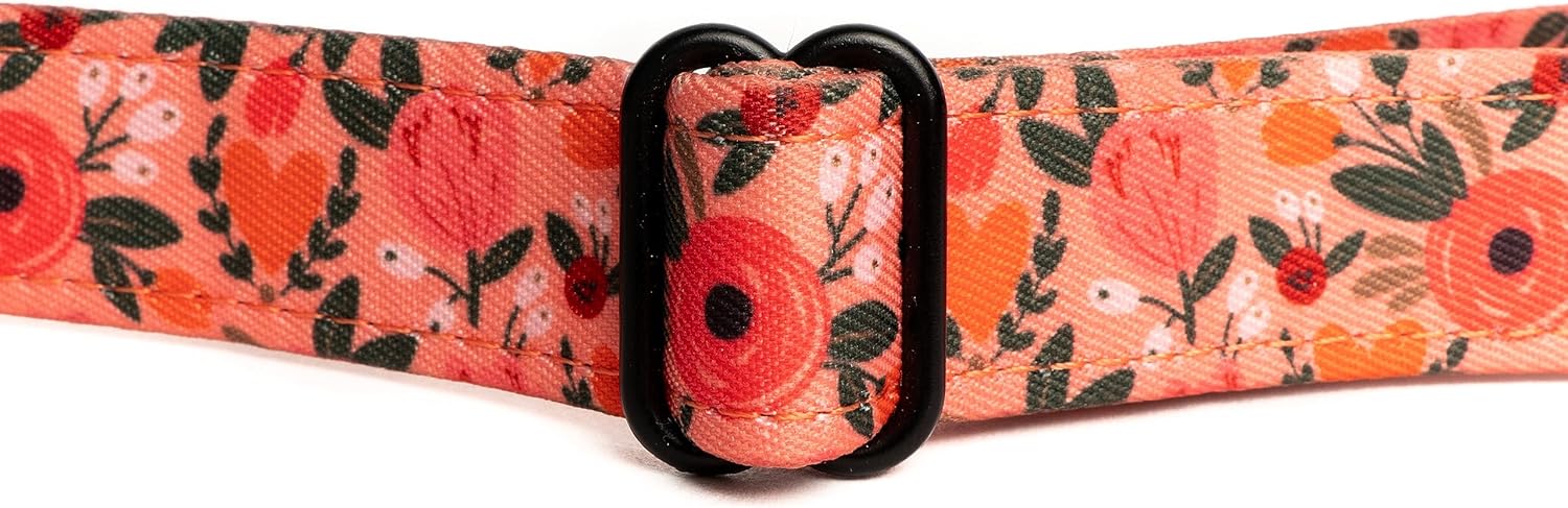 Lucy & Co. Posy Pink Dog Collar – Durable Lightweight Designer Collar for Pets – Adjustable Metal Safety Buckle – Coral Pink Floral – Medium