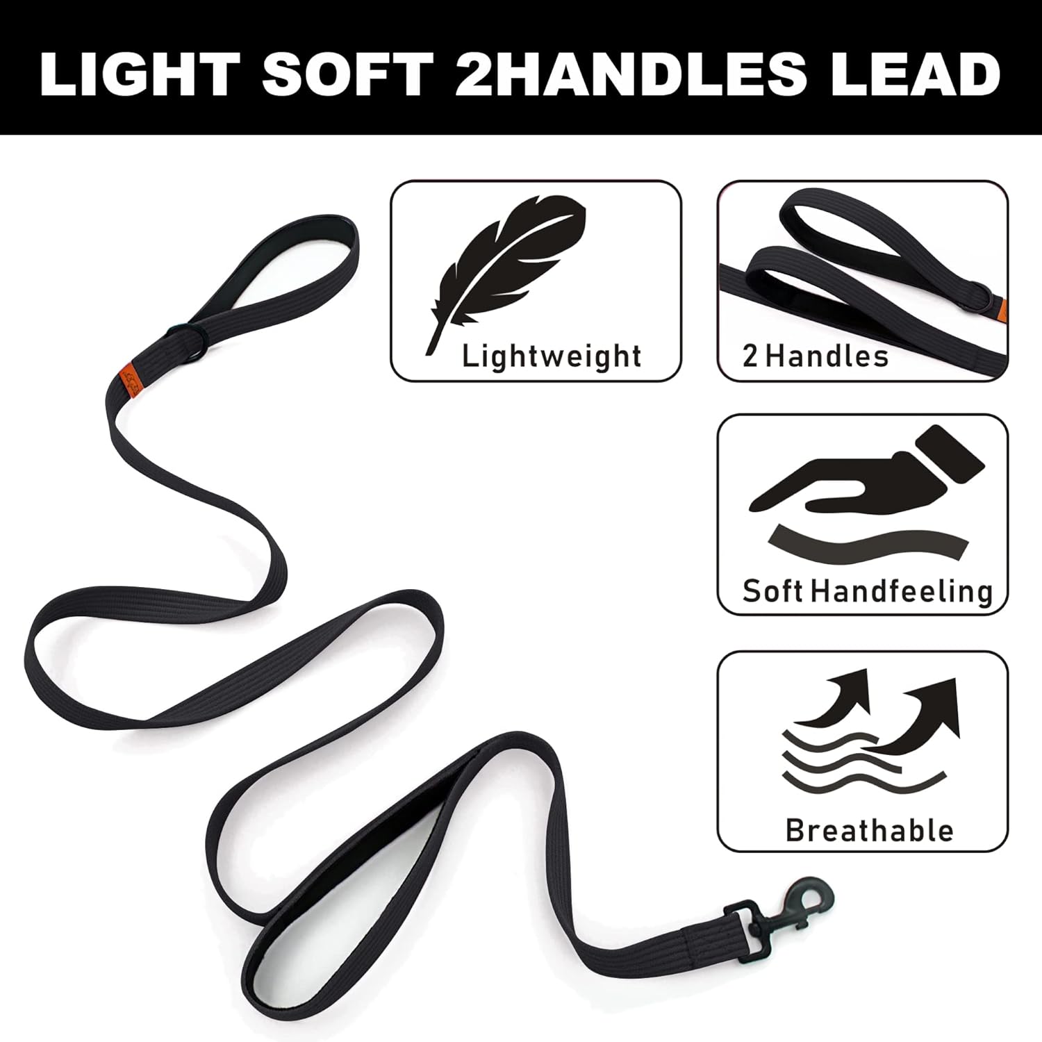 Two Handles Dog Leash: Our 2 padded handles leash is specially designed with 2 handles,one at the end at 6ft and the other 2ft from the clip. All the 2 handles have soft padded lining for comfortable grasp. Use the handle at the end for casual daily walks,extended sniffing;use the handle 2ft from the clip for instant,up-close control when walking your dog through sidewalk or crowded areas. Double handle leash enables you to switch at will between freedom and control.