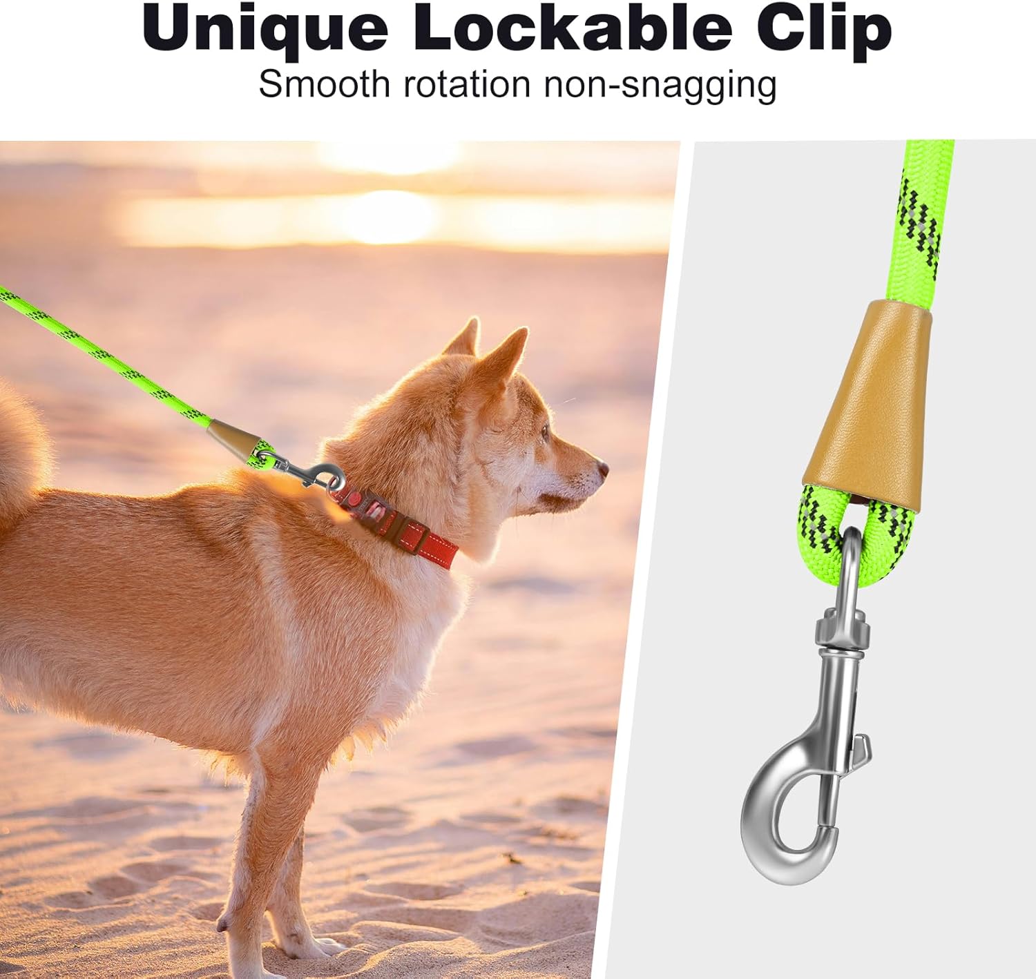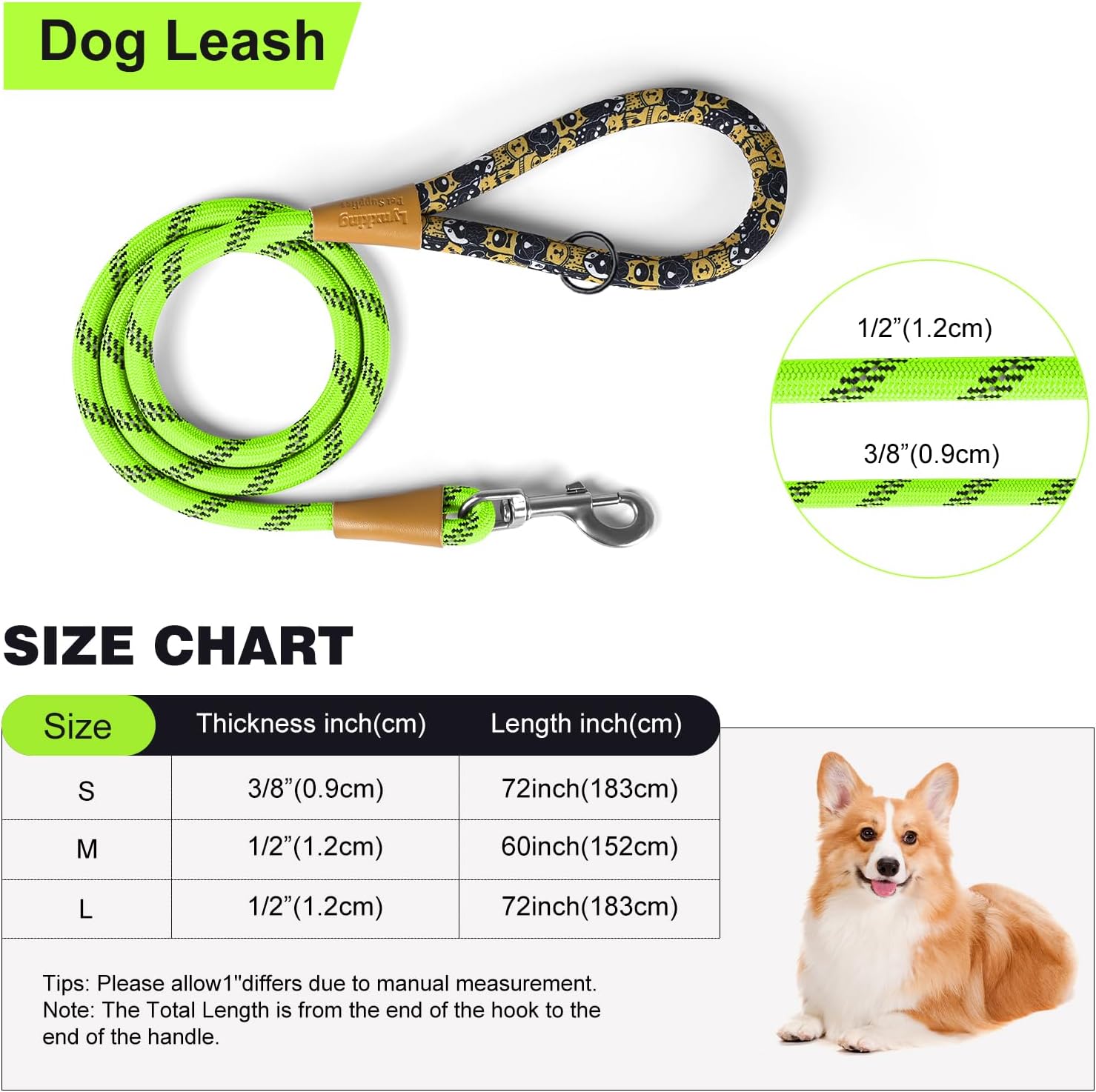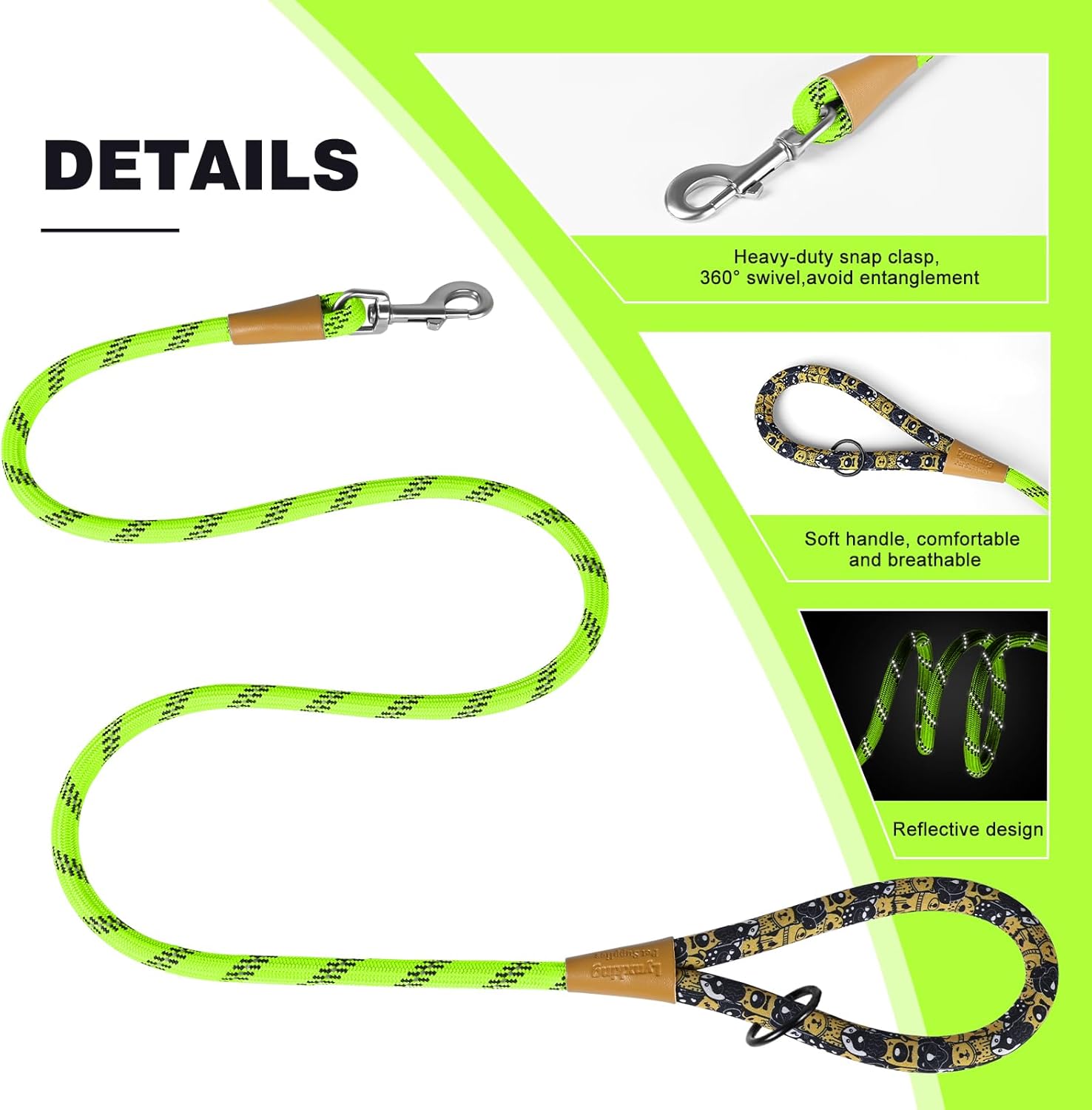 lynxking Rope Dog Leash 6 FT with Comfortable Padded Handle, Highly Reflective Threads Leash for Small Medium Large Dogs (Light Green, Large 1/2in x 6ft-Rope Clasp)