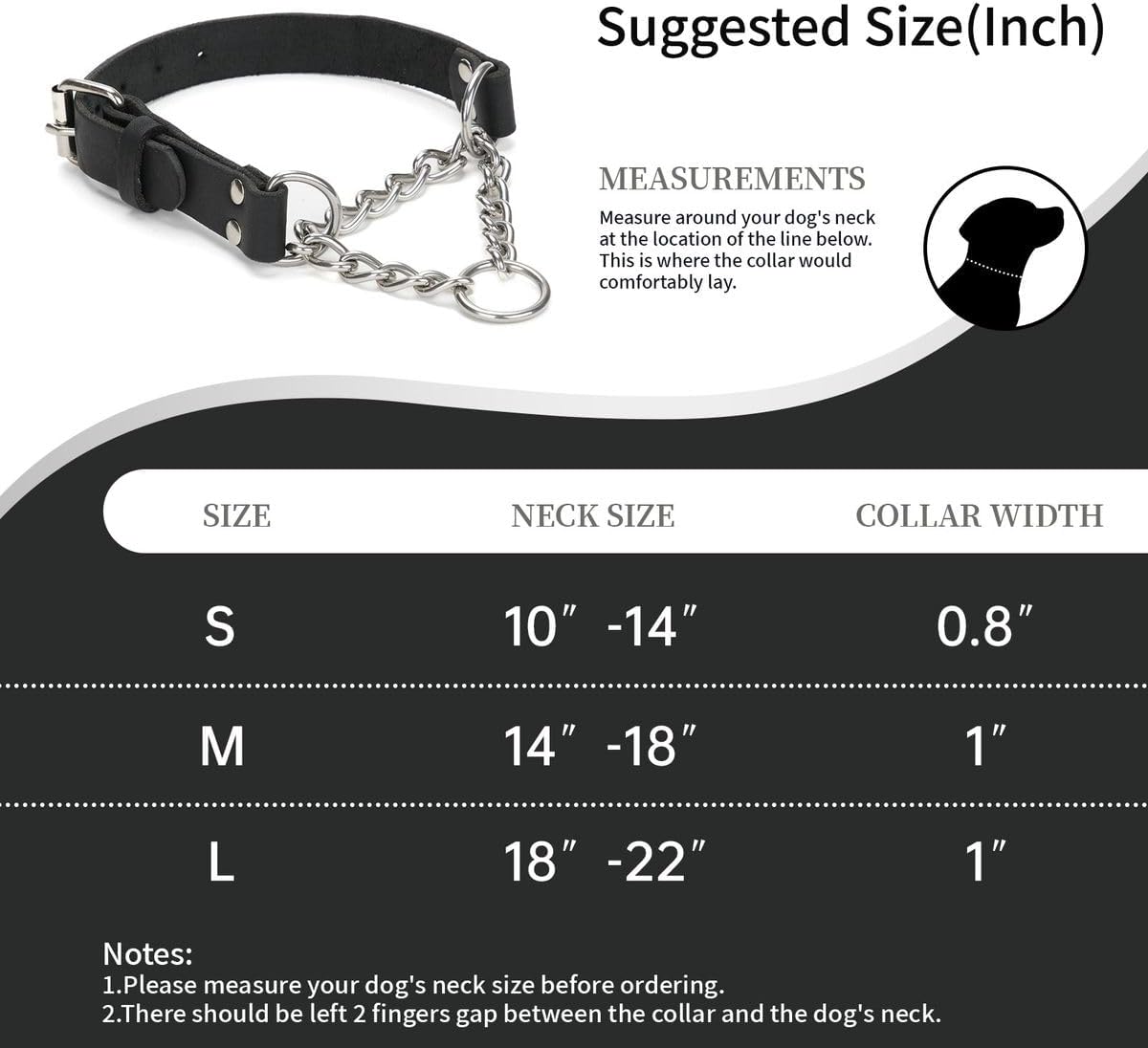 Martingale Collar for Dogs No-Pull Adjustable Training Collar with Stainless Steel Chain – Genuine Leather Anti-Slip Design for Small,Medium,Large Breed Dogs – Black (M)