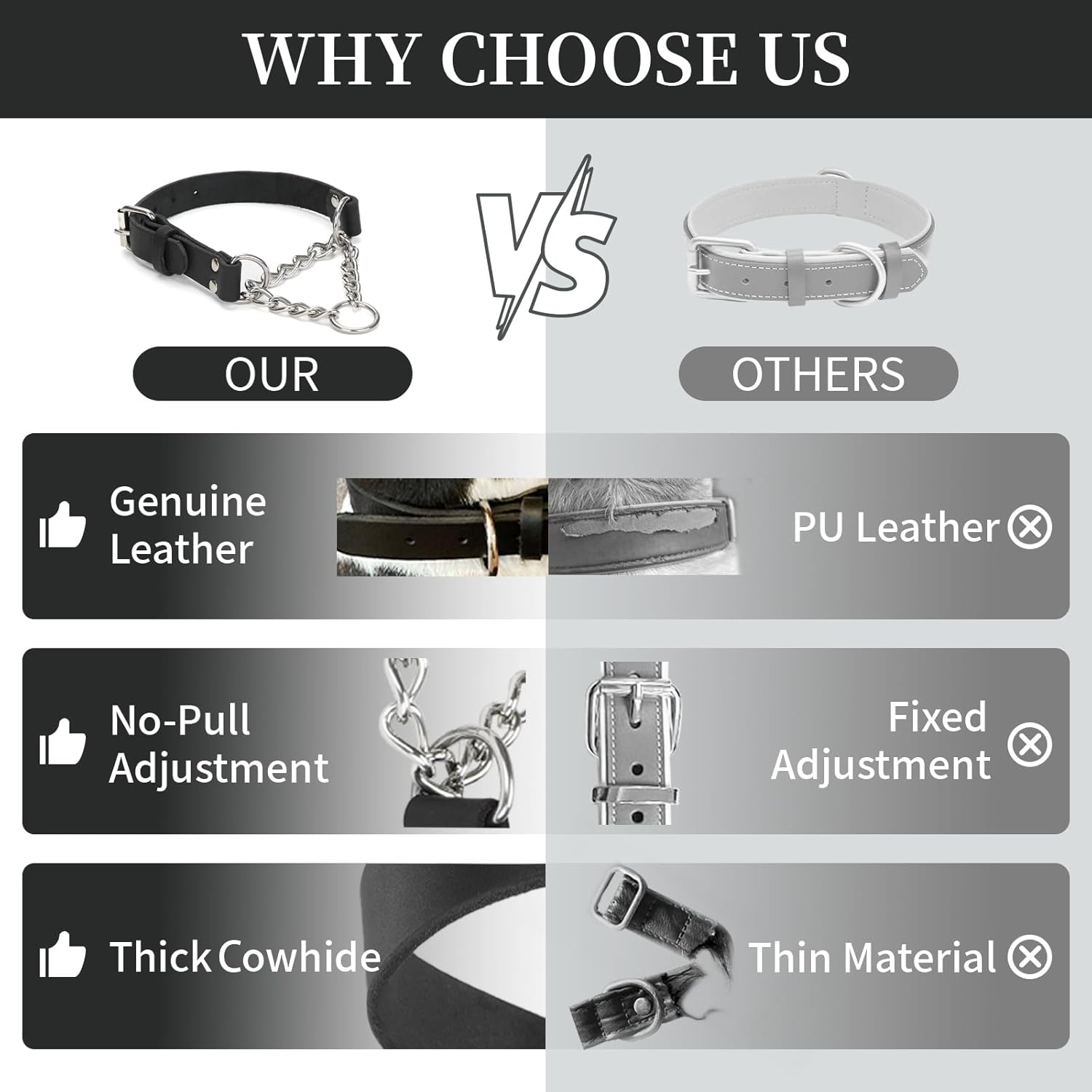 【Premium Quality Leather】Made from 100% genuine leather and features a stainless-steel chain, our dog collars provides unmatched durability and comfort.