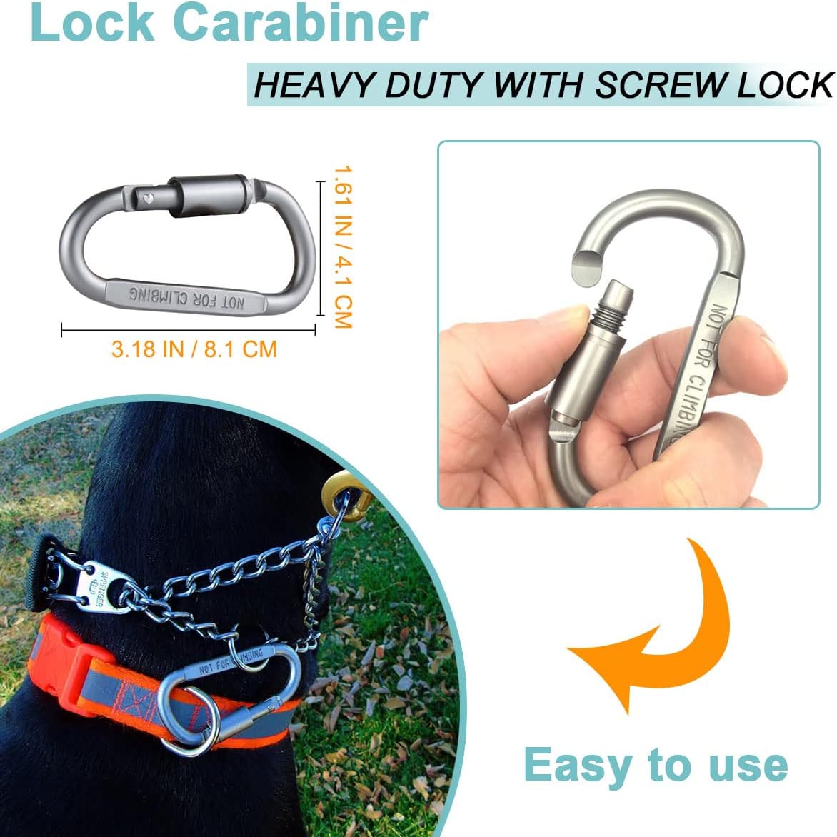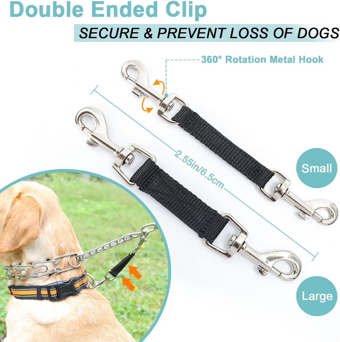 Safe to Use: For safety purposes, please always use the backup collar, place it over your dog’s head and position it below the dog pinch collar. No worry about accident loss of the dog, our slip collar helps as a backup for when the dog prong collar comes apart. The double-ended clasp and lock carabiner are good insurance for multiple collars, harnesses and dog leashes