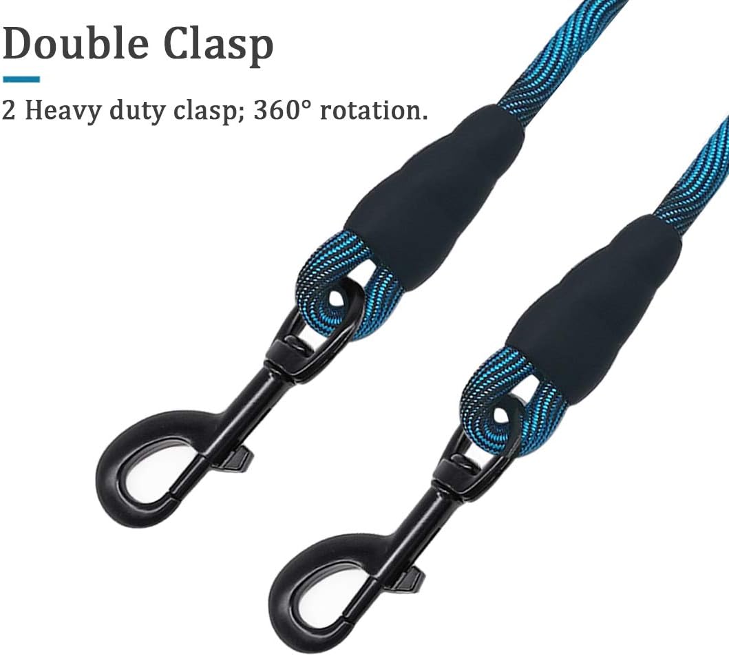Dual Clasps for Escape-Proof Security: The dog tether with 2 heavy duty clasp, 360 degree swivels to resist twisting. Use the dual-end design to attach one side to your dog’s collar and the other to fences, porches, or posts