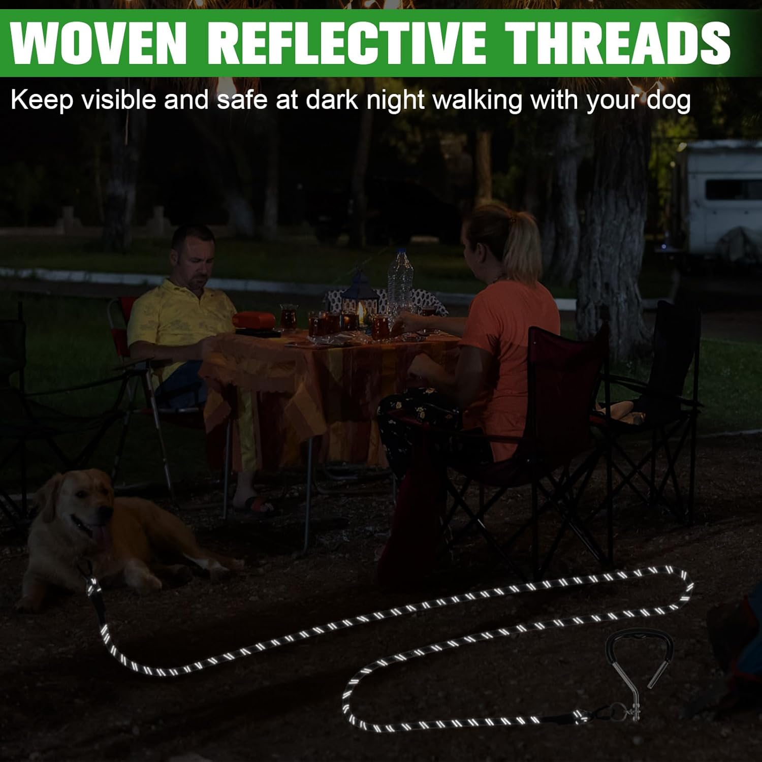 DETACHABLE HANDLE & REFLECTIVE LEASH: Soft padded handle for a comfortable grip. The handle is removable and can be used for walking the dog or with our dog tie out stake, which is very practical. Reflective for night safety, We have added a reflective stitching around this strong training lead to make sure it is visible in car light. Your dog’s safety is always our highest priority