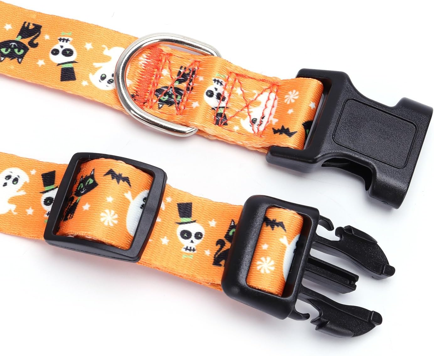 Quick release buckle made of high-quality plastic, easily adjust the length, easy to put on and take off. Separate loops on the collar allow for easy addition of dog tags and leashes to the collar.