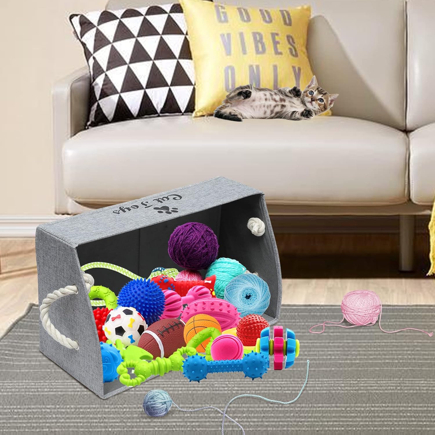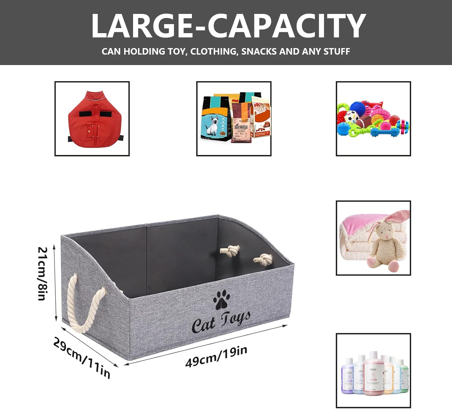 2: CANVAS PET TOY STORAGE BASKET SIZE: 19.7″ Lx11.2″ Wx8.3″ H (50cm L x 28.5cm W x 21cm H) – Spacious and keeping your living area clean and clutter free.