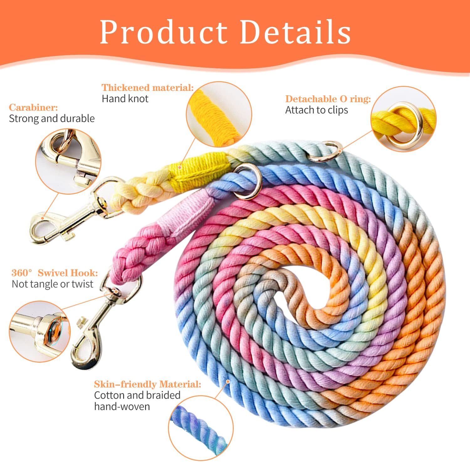 Multifunctional Rope Dog Leash 7.5 FT with Adjustable Double Swivel Hook Hands Free for Small Medium and Large Dogs Running Hiking Camping Walking (Colorful Macaron)